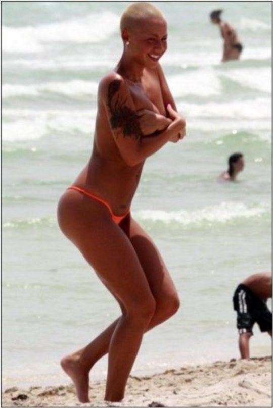 Amber Rose – topless at the beach, 2009