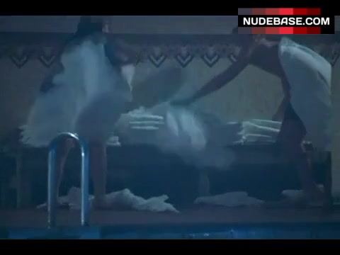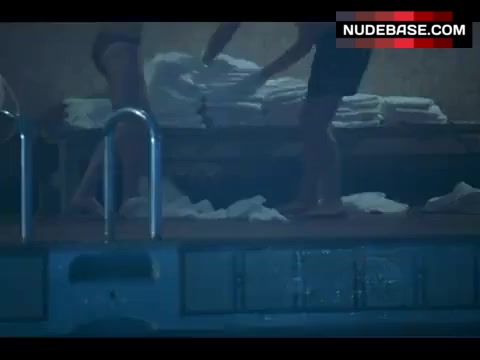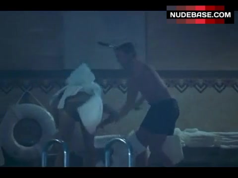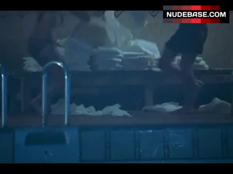 In this scene from the comedy "Slackers" (2002) you can see Jaime King in bikini.