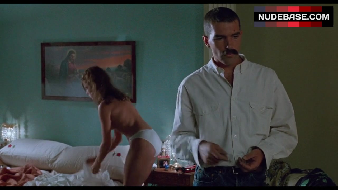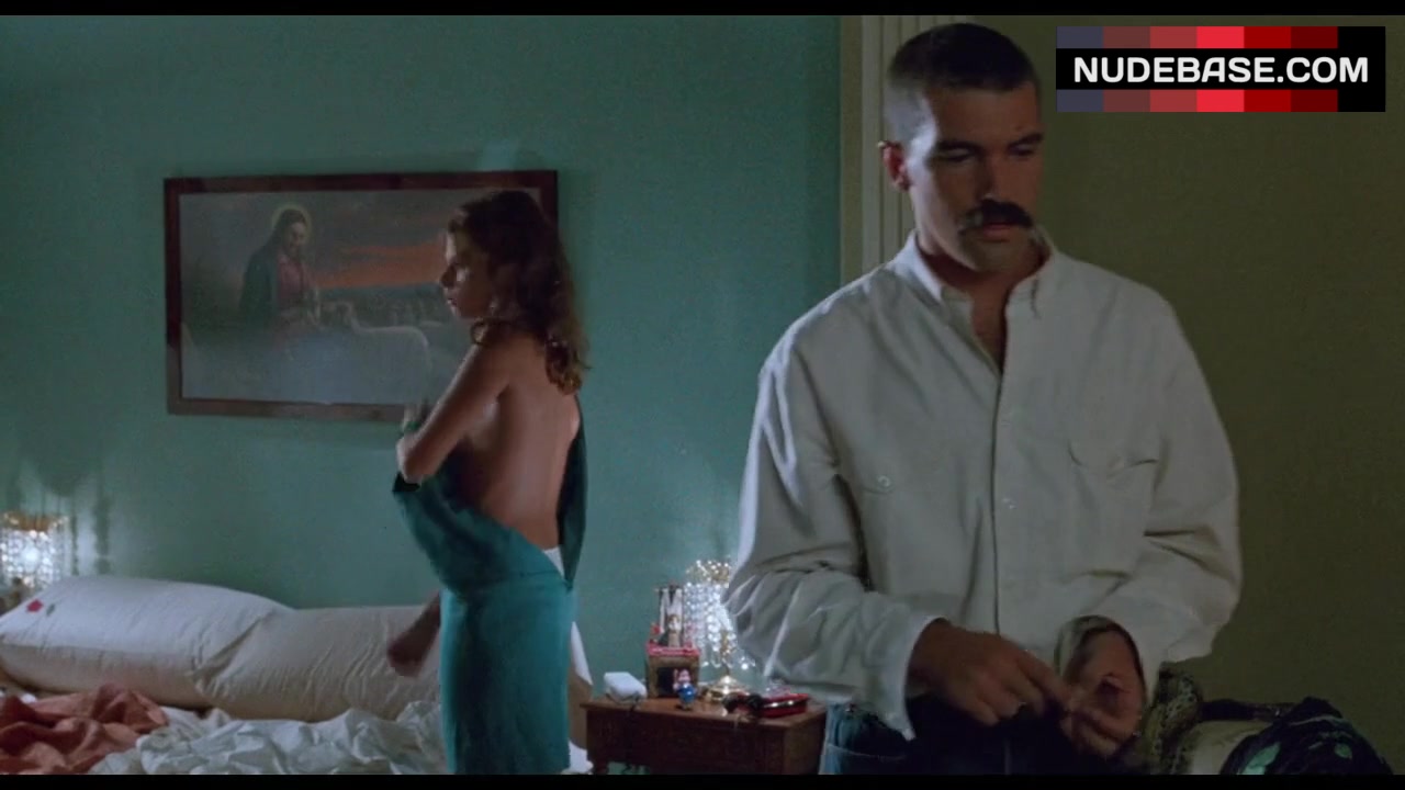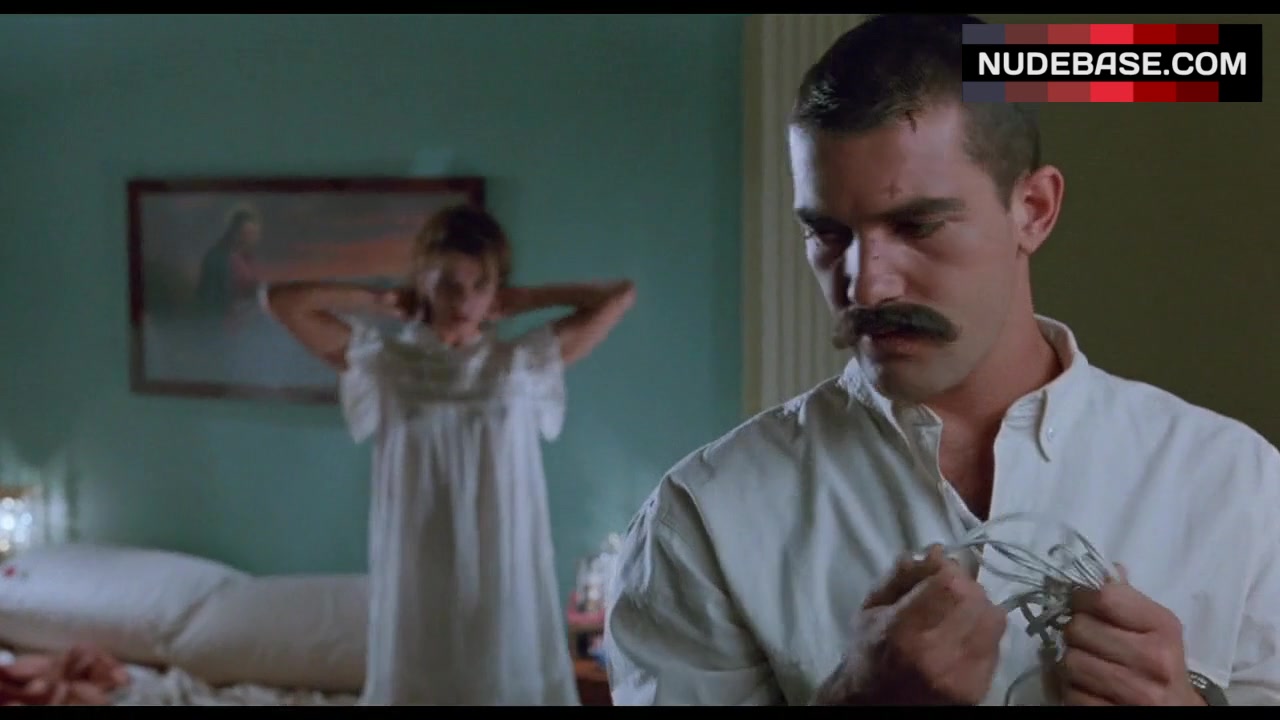 In this scene from the drama "Tie Me Up! Tie Me Down!", released in 1989, Victoria Abril flashes her tits.