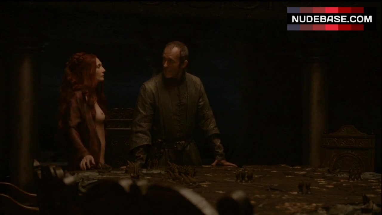 In this scene from the drama "Game of Thrones" (2011) Carice Van Houten is having sex on table. She demonstrated naked tits here.