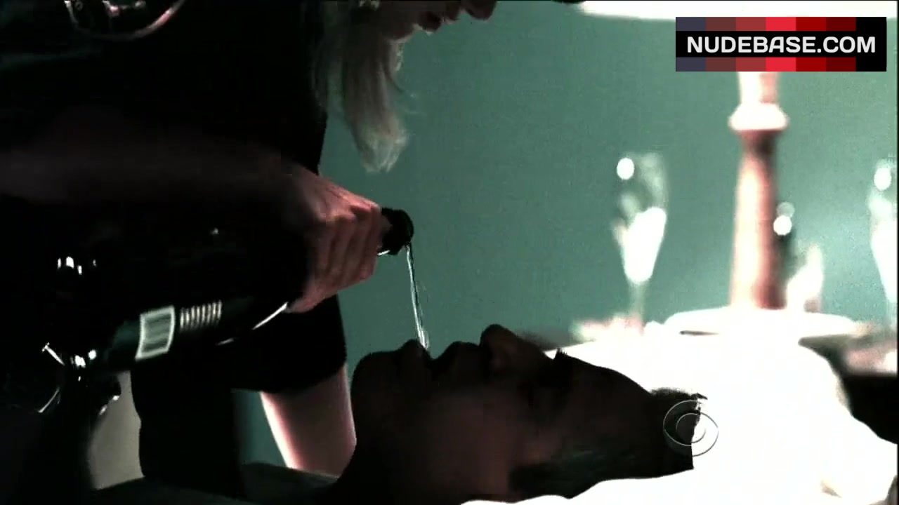 This scene from the mystery drama "CSI: Crime Scene Investigation" (2000) is unforgettable, because Nicole Malgarini is playing too sexy in it.