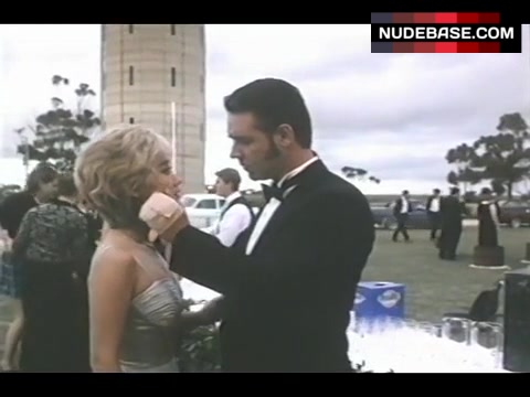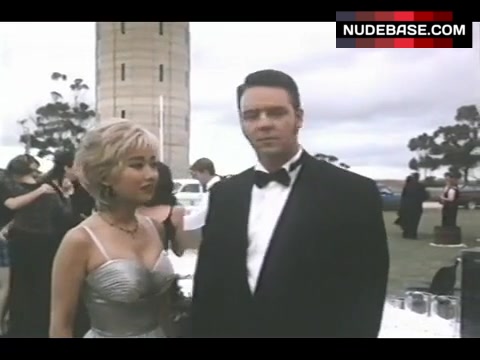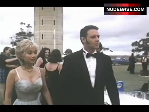 In this scene from the drama "Heaven's Burning" (1997) Youki Kudoh shows cleavage.