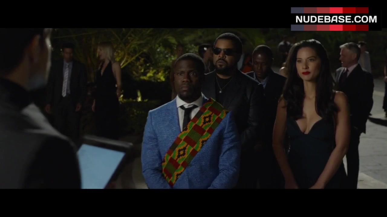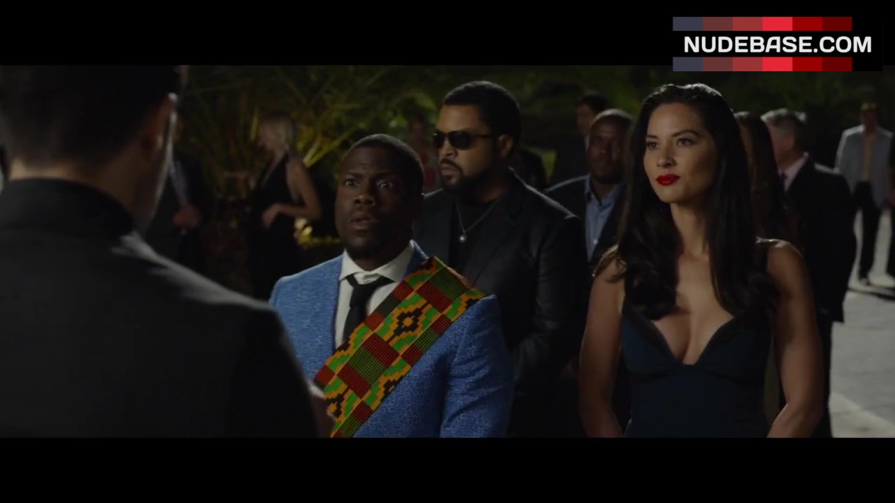 In this scene from the comedy "Ride Along 2" (2016) Olivia Munn shows cleavage.