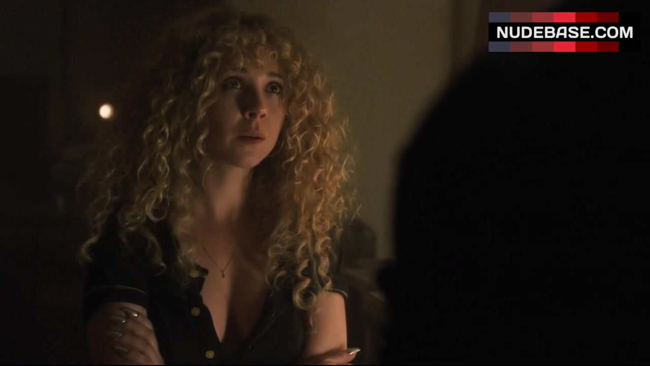 In this scene from the drama "Vinyl", released in 2016, Juno Temple shows cleavage.