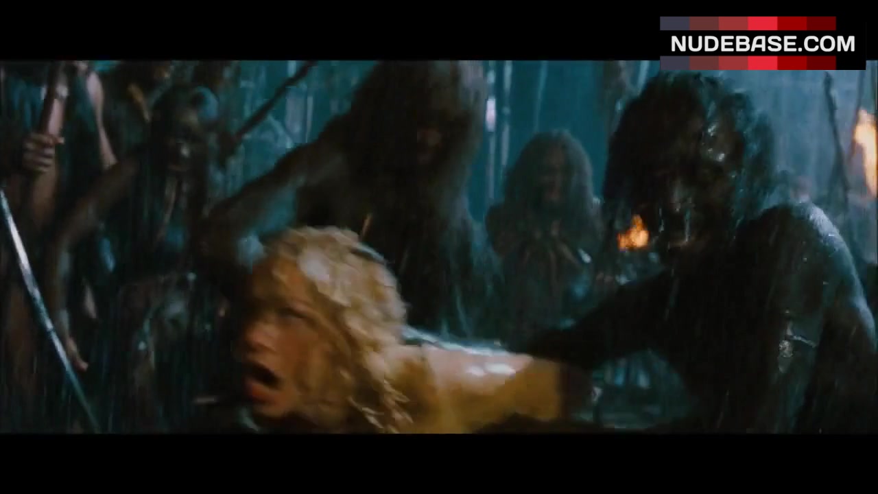 I love the way the two natives hold her it’s really sexy, and I also love the fact that she’s barefoot the whole time and I love that it’s raining too because then she gets all wet and seeing her all wet like that really turns me on, and also I really wish she got raped by the natives before they sacrificed her it really would’ve been great to see her struggling against them as they all took turns raping her, it really was a missed opportunity.