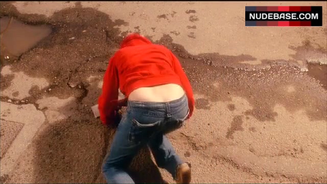 In this scene from the comedy "Smiley Face" (2007) you can see Anna Faris showing ass crack. She shows naked butt here.