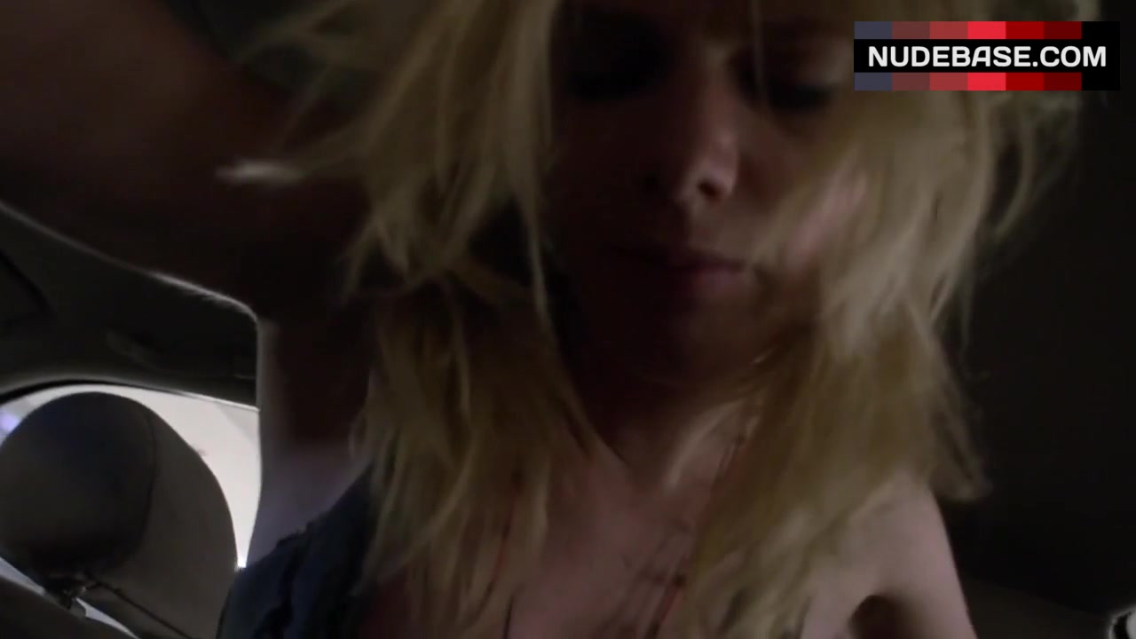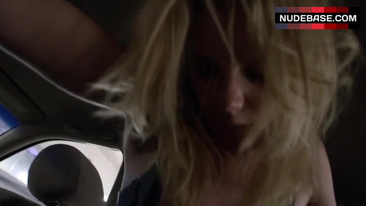 In this scene from the movie "sxtape", Caitlyn Folley is demonstrating passionate sex in car. She shows naked breasts here.