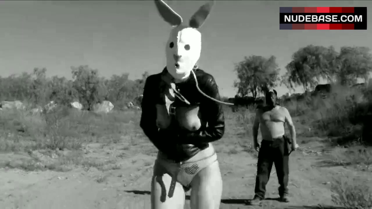 Bunny Mask, In A Field, Chased, Field, Black Leather, Outfit, Bound, Black And White Film, Nude Boobs