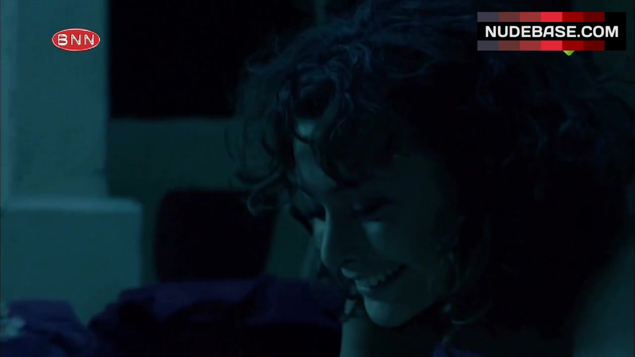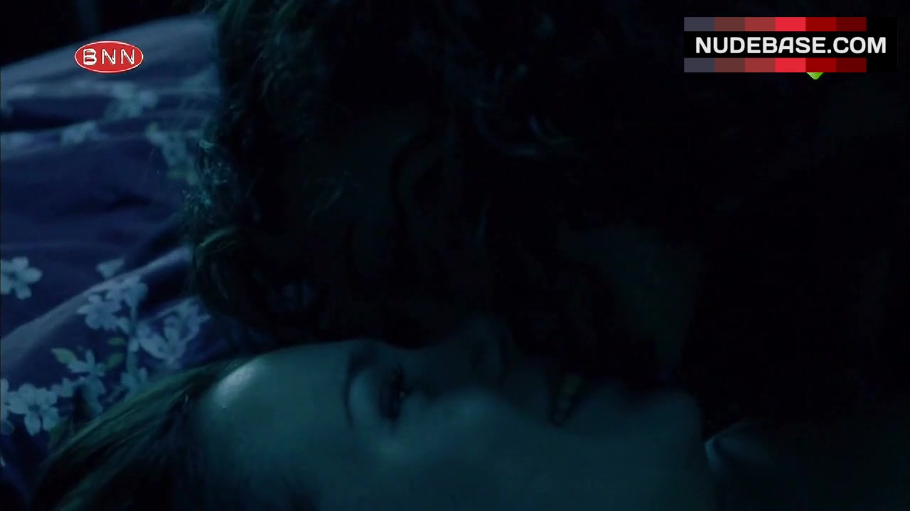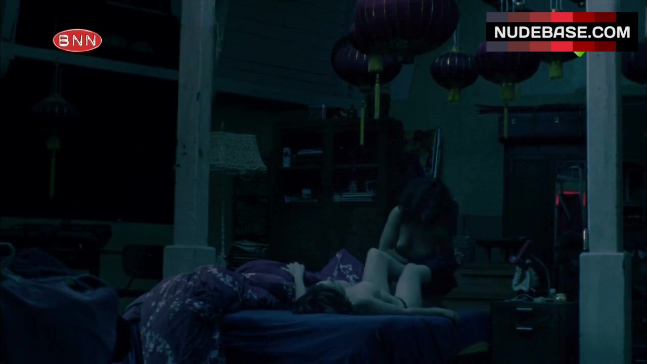 In this scene from the movie "LelleBelle" (2010) Anna Raadsveld is having lesbian sex. She shows naked boobs and bush here.