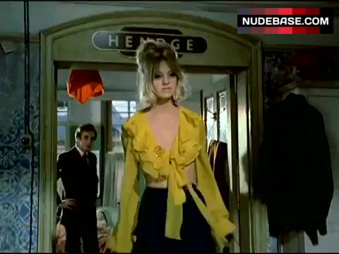 There is scene in the comedy "There's a Girl in My Soup" (1970), in which Geraldine Sherman shows nude tits.