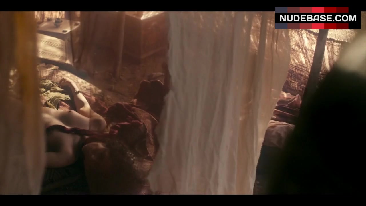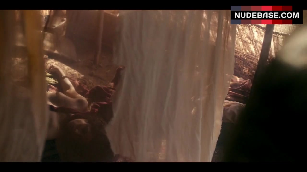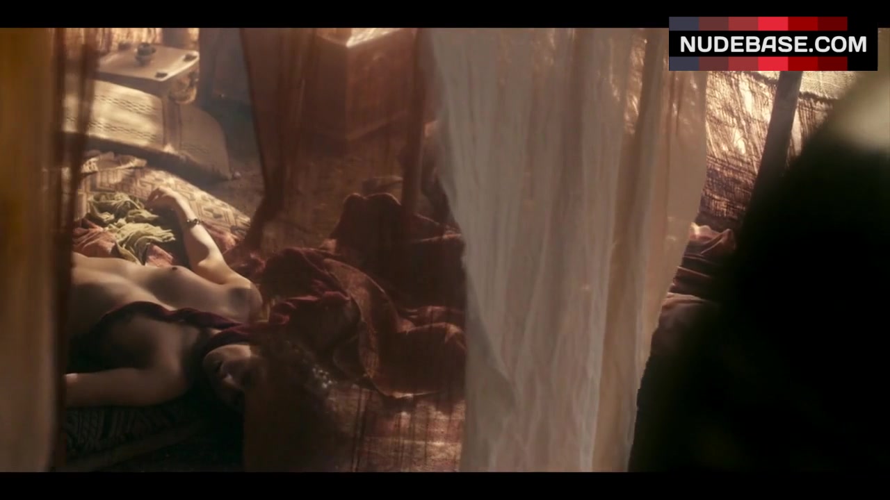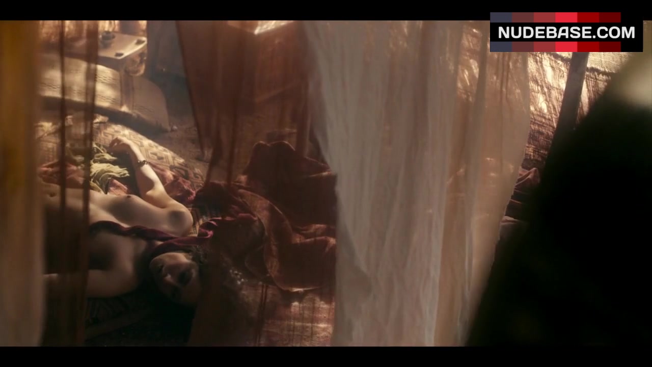 In this scene from the drama "Marco Polo" (2014) Karishma Ahluwalia shows nude tits.