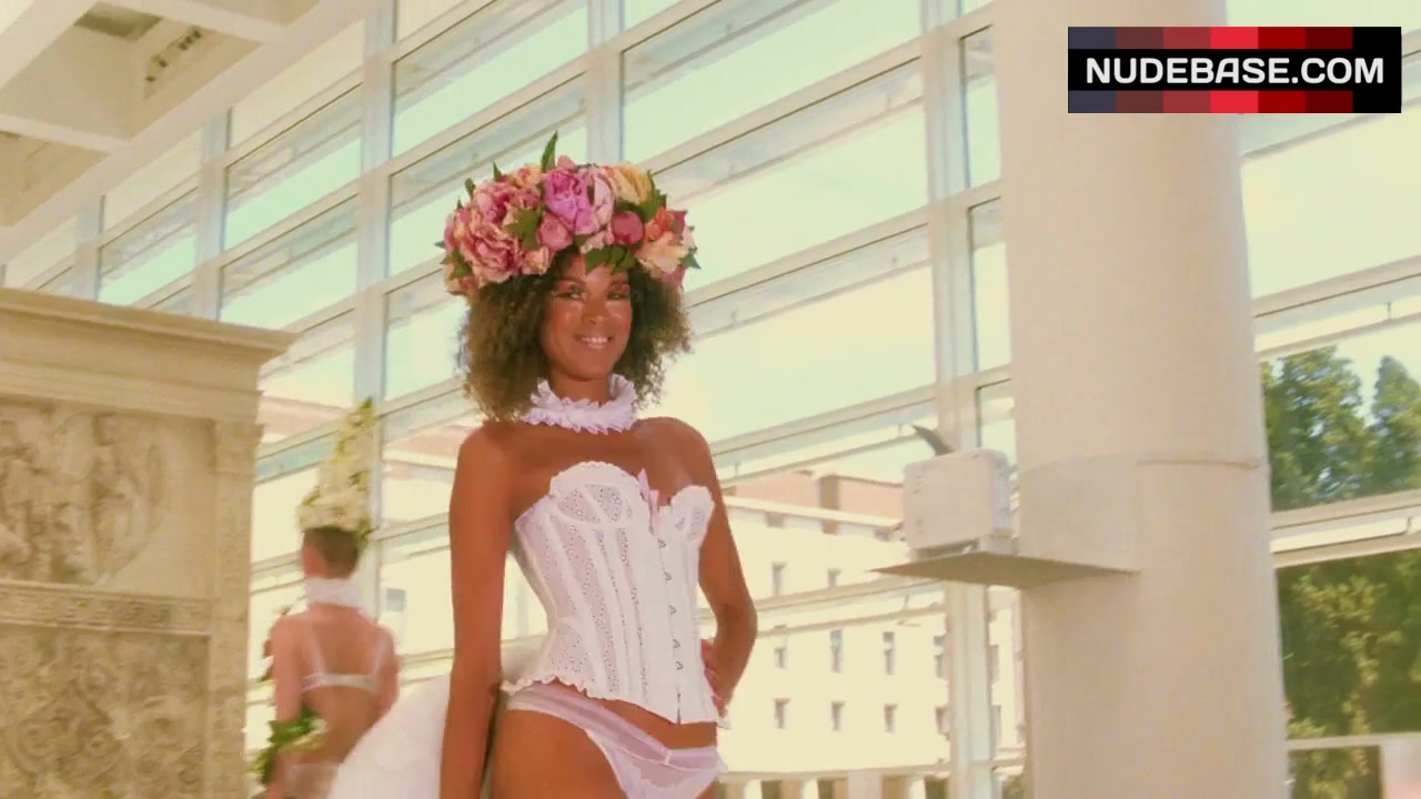 In this scene from the comedy "To Rome with Love" (2012) you can see Claudia Smith in lingerie.