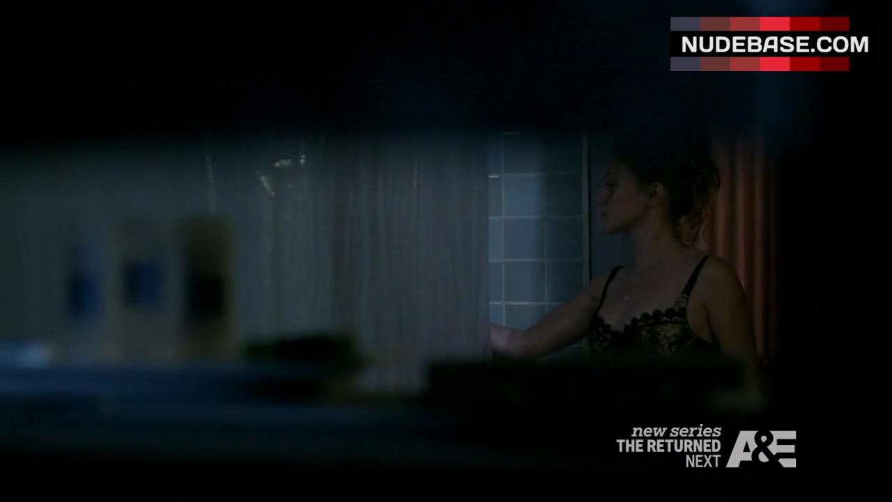 In this scene from the mystery drama "Bates Motel" (2013) you can see Tracy Spiridakos in lingerie.