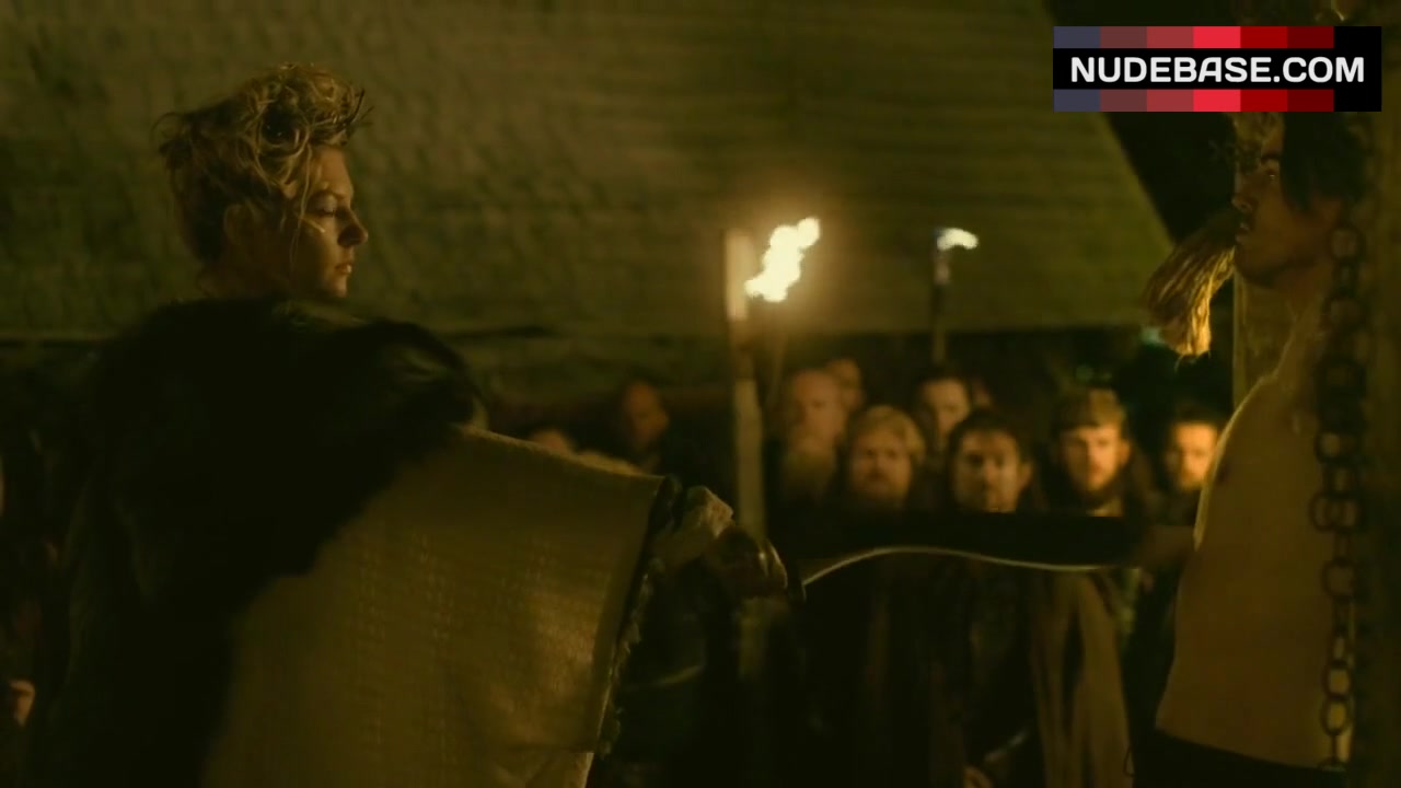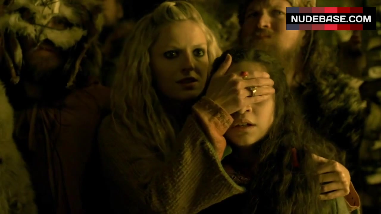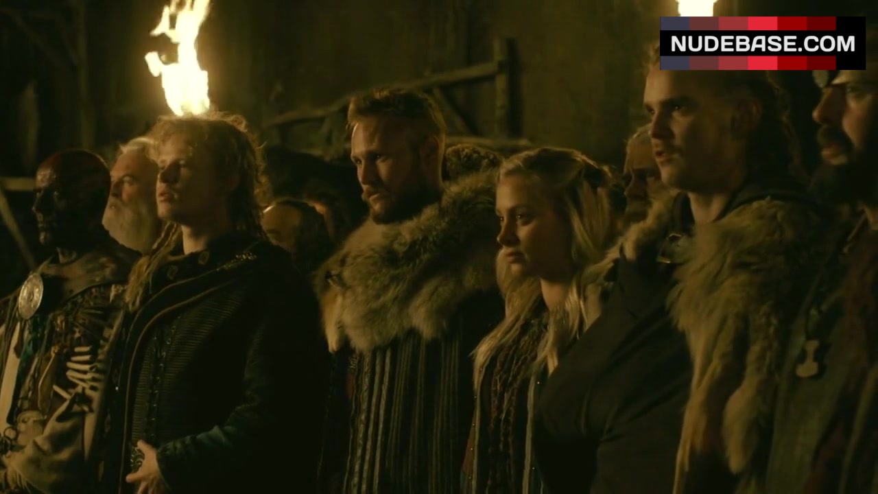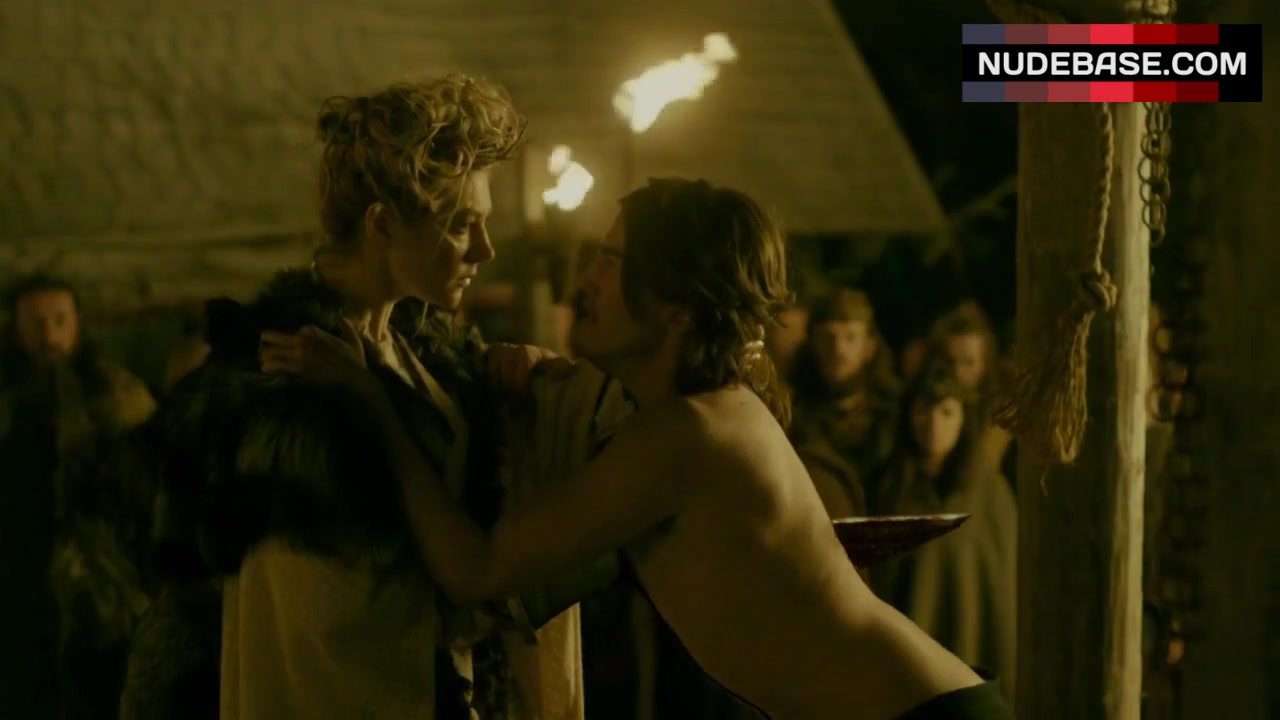 Take a look at this scene from the drama "Vikings" (2013), in which Josefin Asplund shows bare breasts.