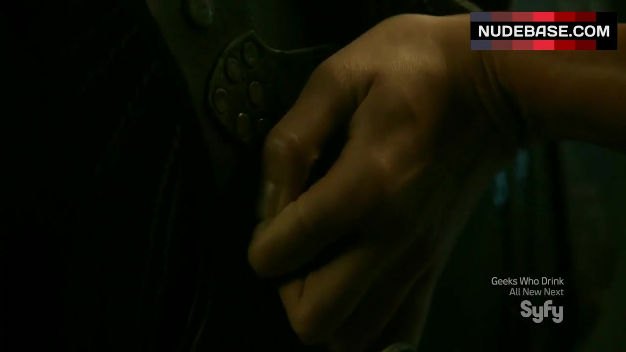 Kim Engelbrecht shows her ass in thong in the drama "Dominion" which was released in 2014.