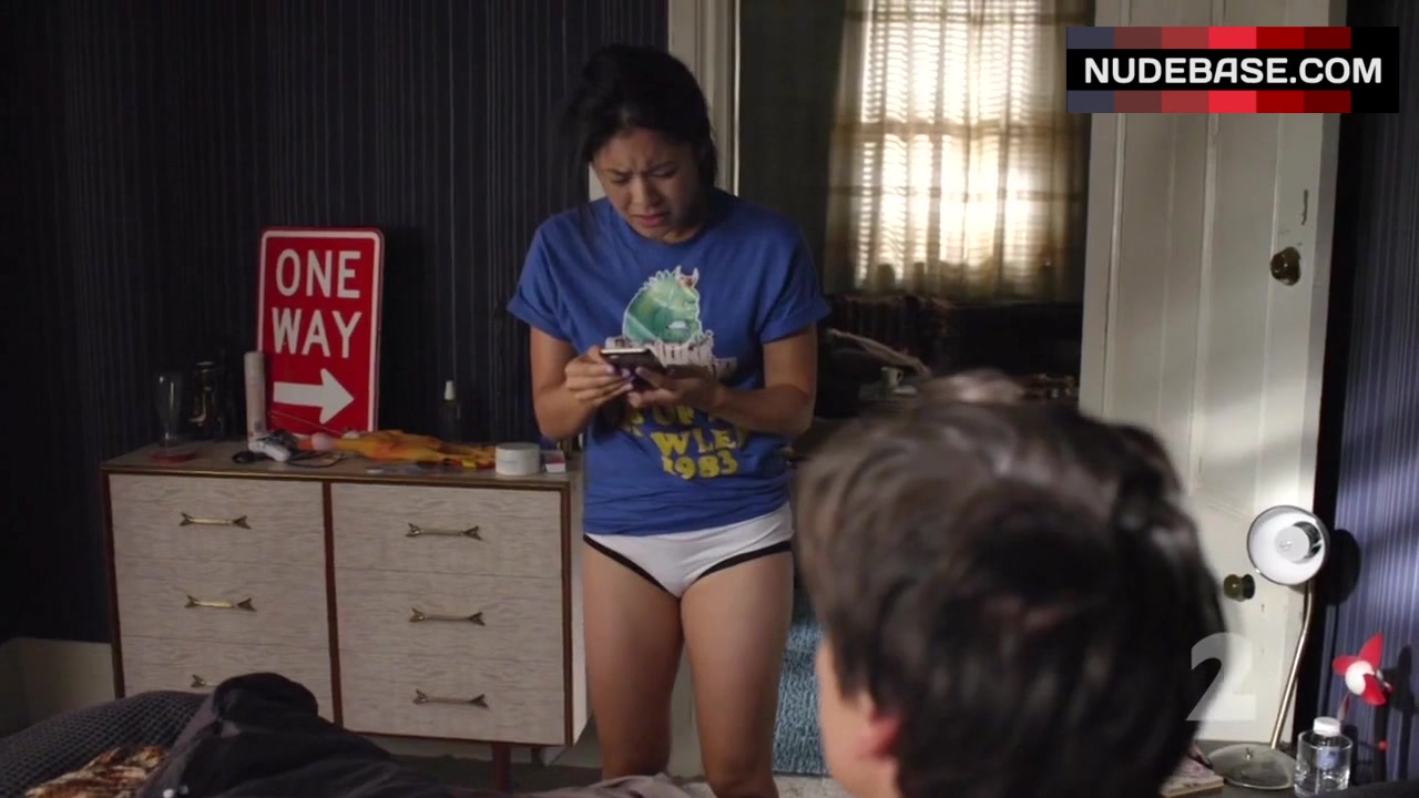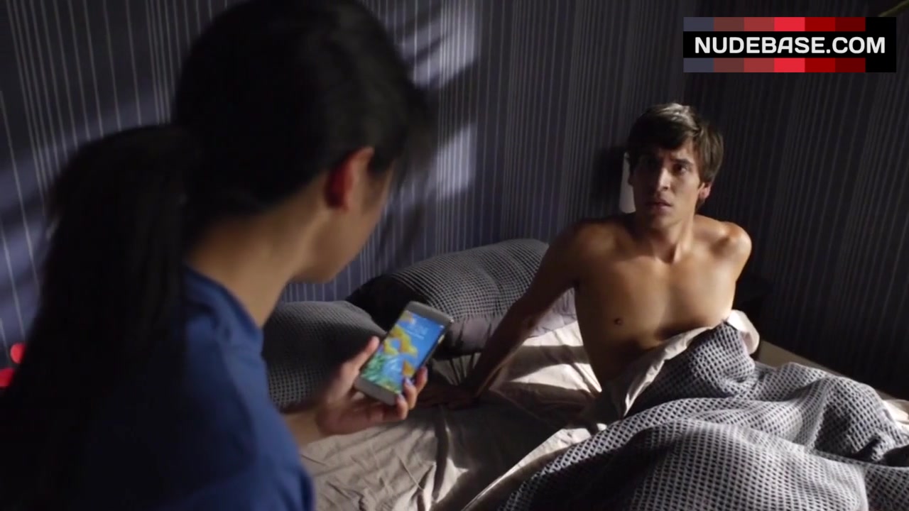 In this scene from the comedy "Step Dave" (2014) you can see J.J. Fong in lingerie.