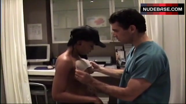 Precious Muir appears in breasts scene in the movie "Boobs" . She shows fake naked tits here.