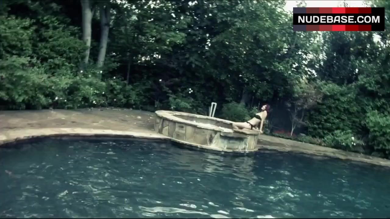 Chanon Finley shows her body in black bikini in the movie "666: the Devil's Child".