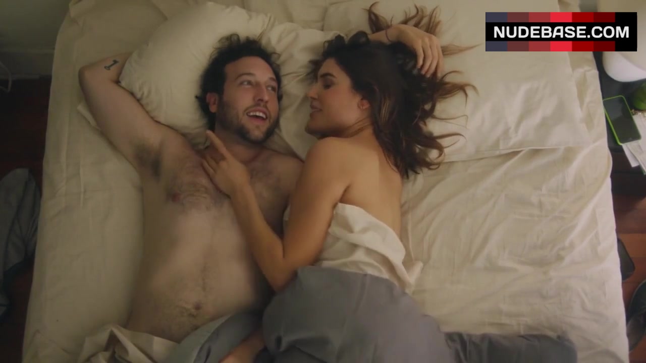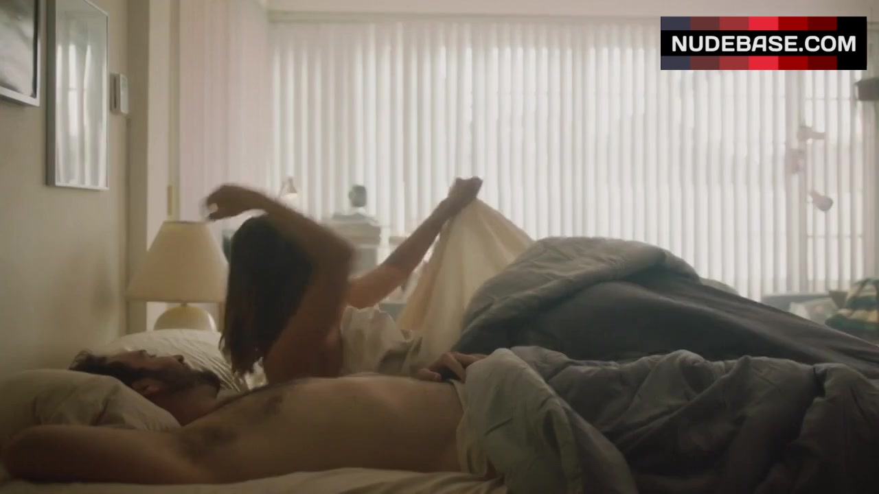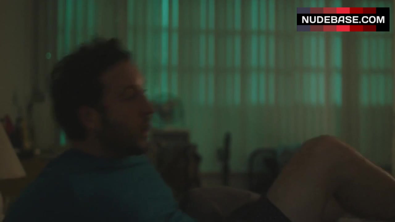 In this scene from the series "All Wrong" Angie Simms shows side boob.