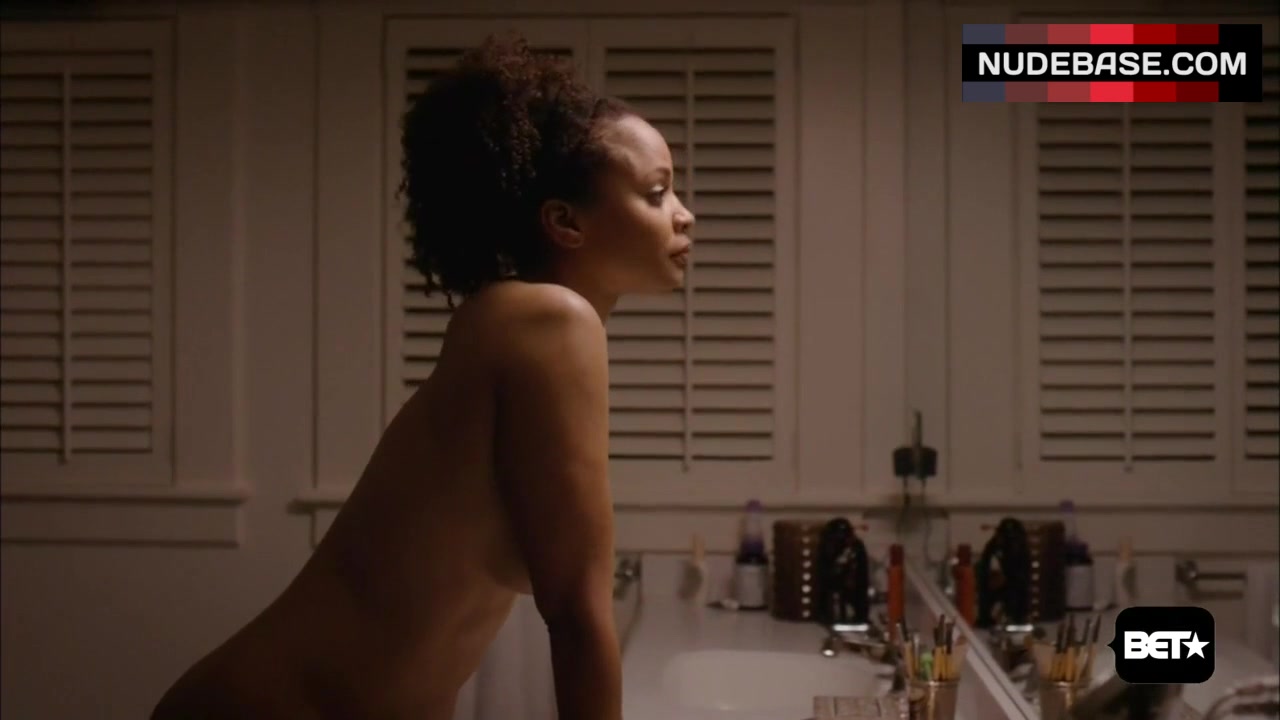 In this scene from the drama "Being Mary Jane" (2014) Latarsha Rose shows side boob. You can see her naked breasts here.