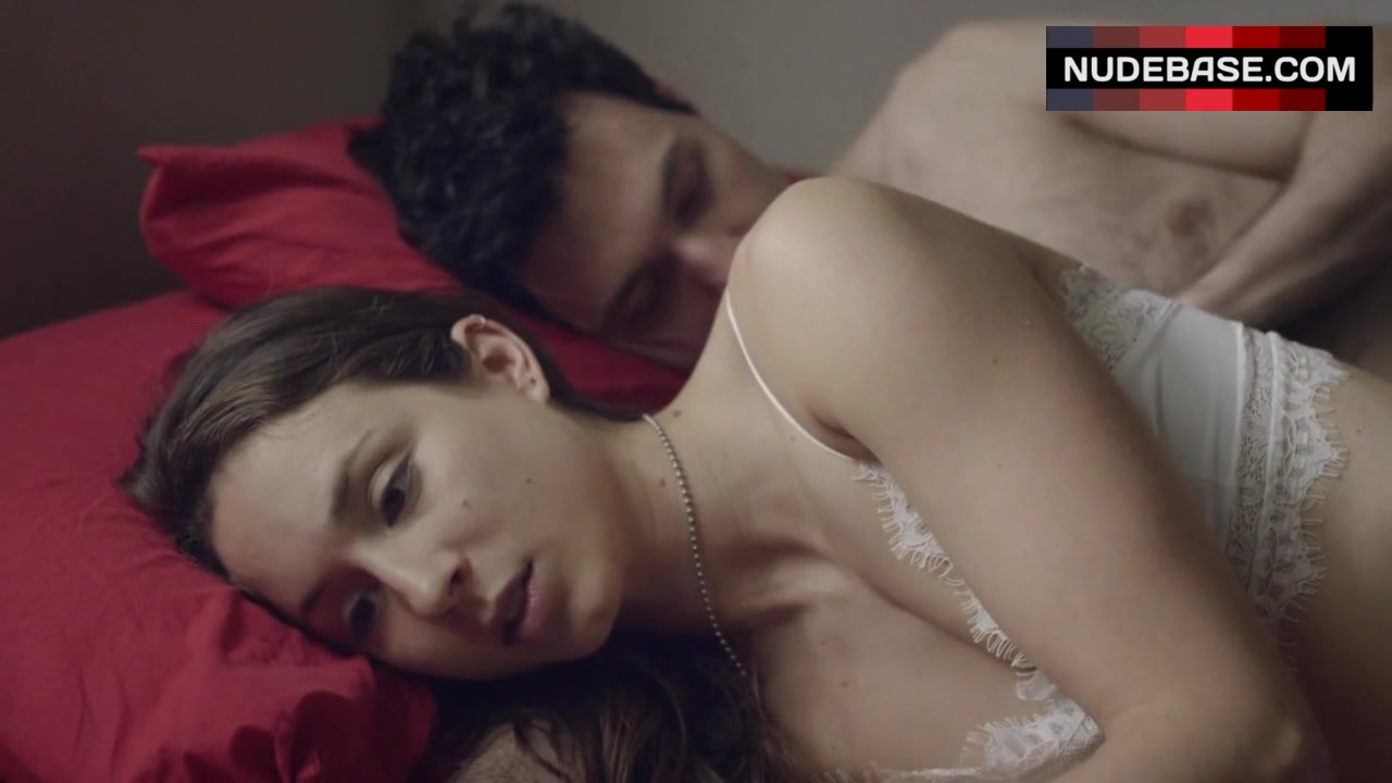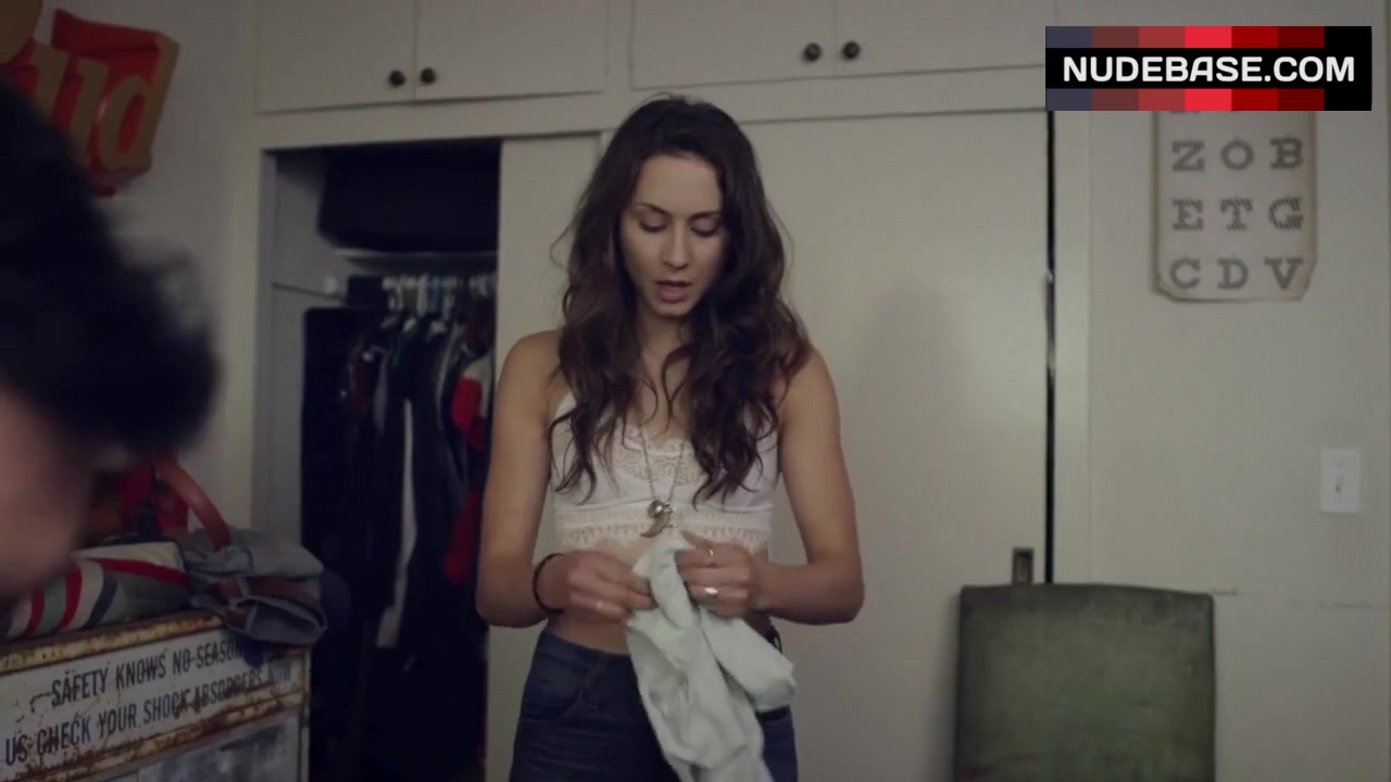 Troian Bellisario shows her body in white lingerie in the movie "Amy".