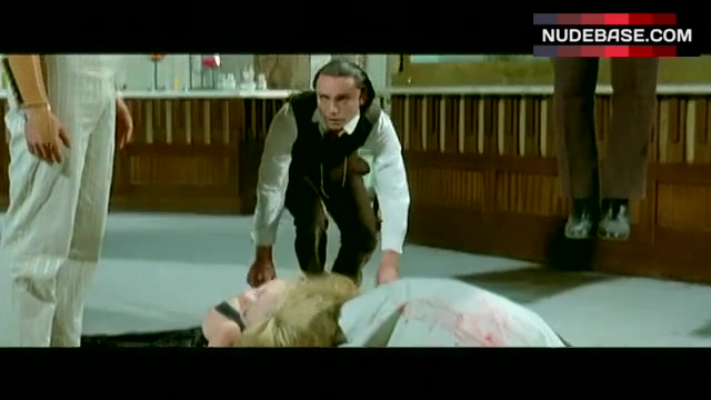 Monique Van Vooren appears in boobs scene in the movie "Flesh for Frankenstein" (1973). She shows naked tits here.