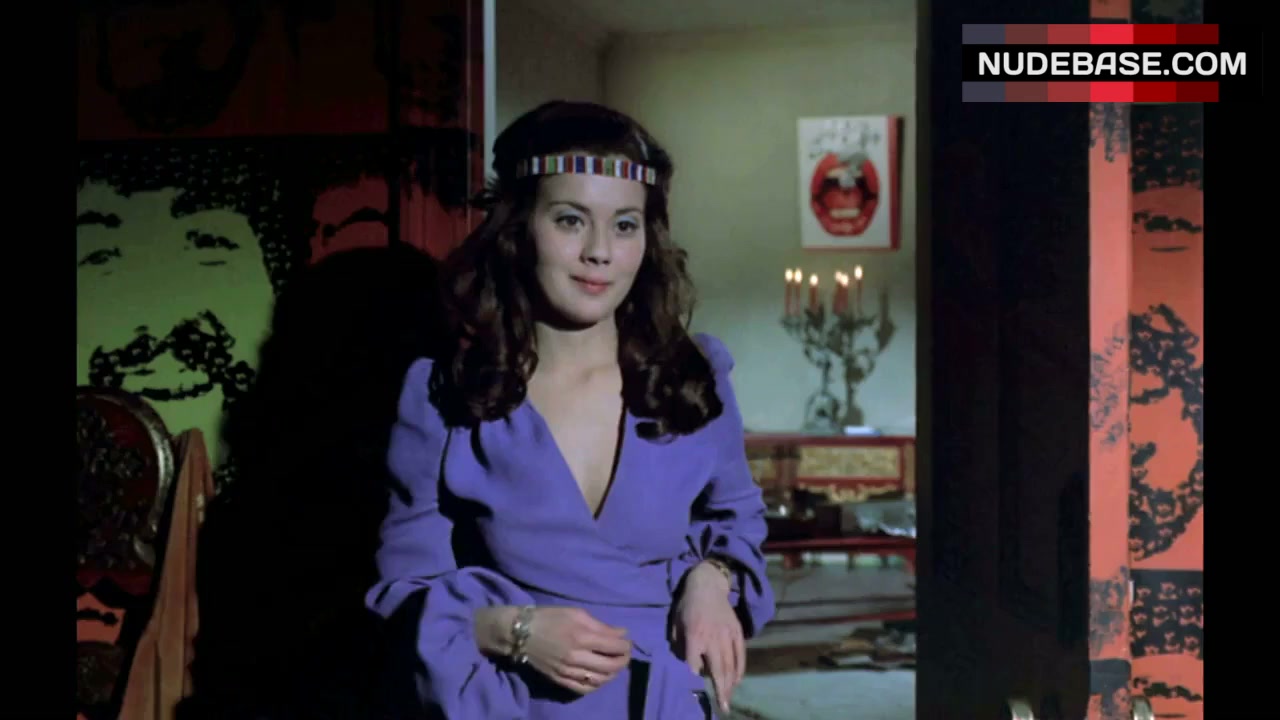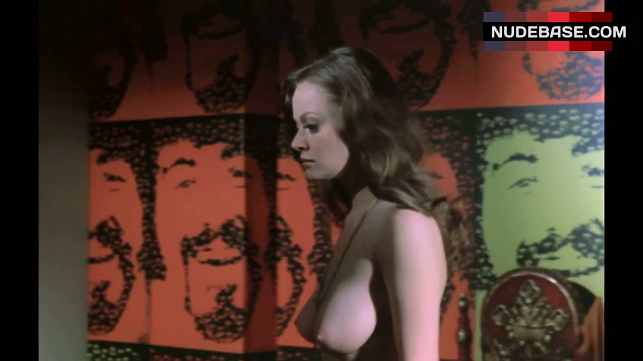 In this scene from the comedy "Au Pair Girls" (1972) Lyn Yeldham shows bare boobs.