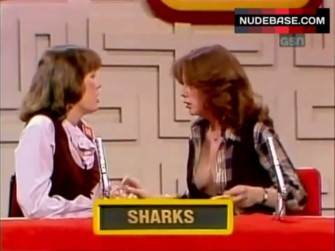 In this scene from the series "Password Plus" Debralee Scott shows cleavage.