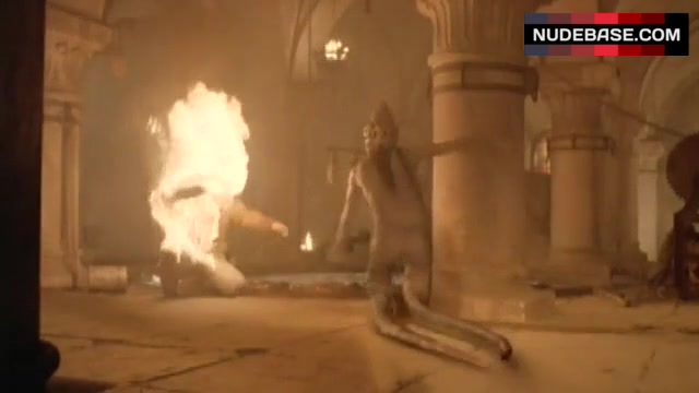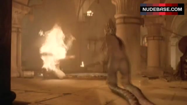 You can see hot Macarena Gomez in the movie "Dagon" (2001) and her naked ass.