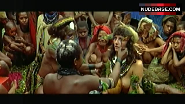 In the movie "La Vallee" Valerie Lagrange is starring in topless scene. She shows naked breasts here.