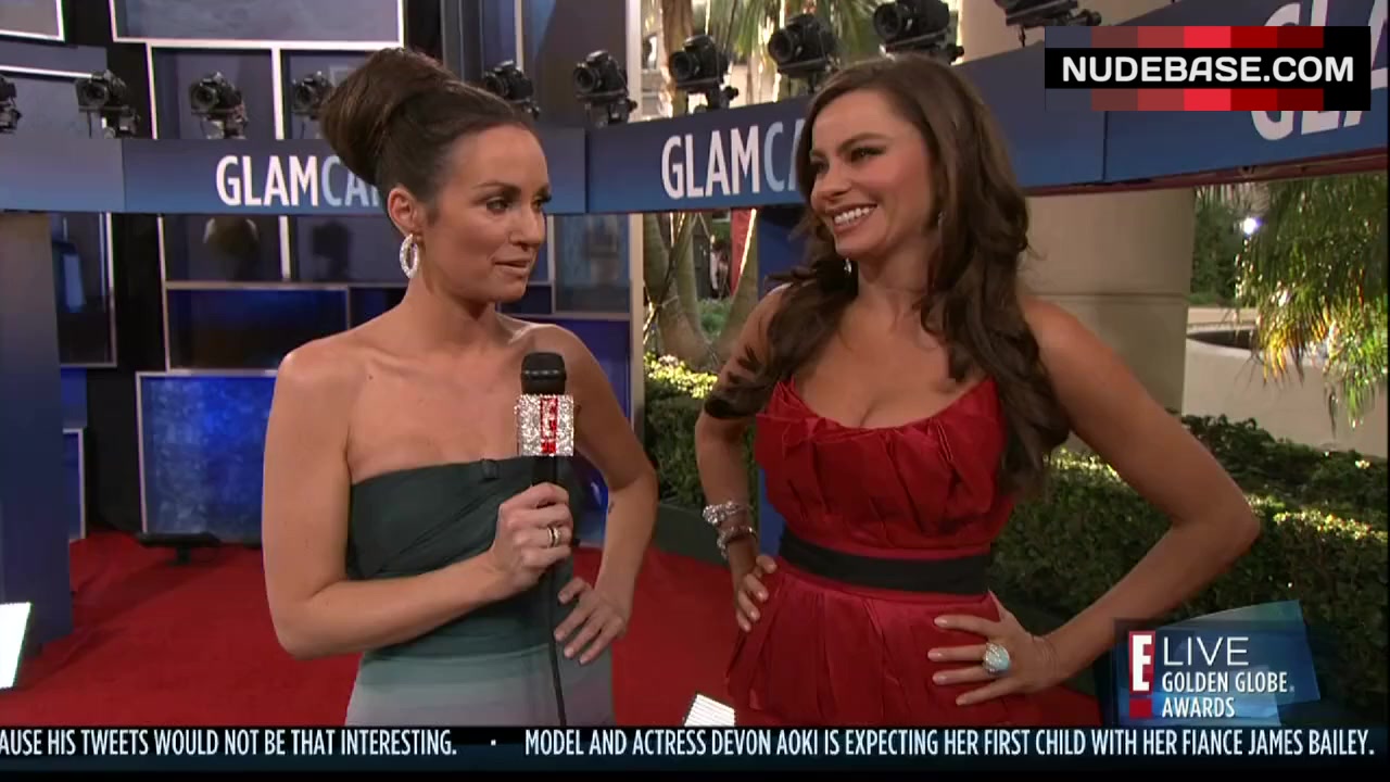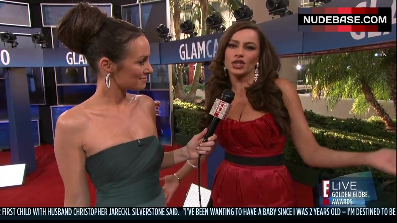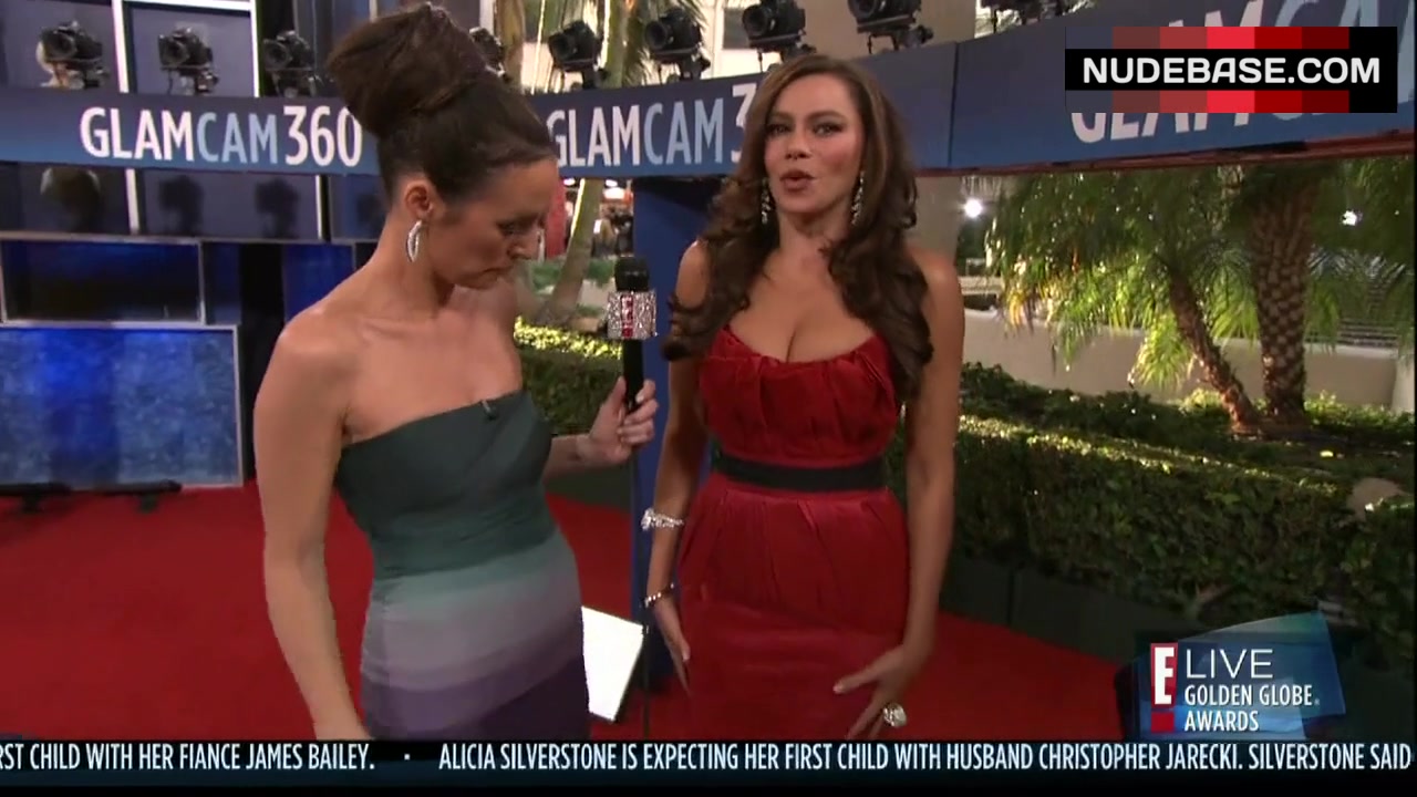 Sofia Vergara shows cleavage in the series "The Golden Globe Awards".