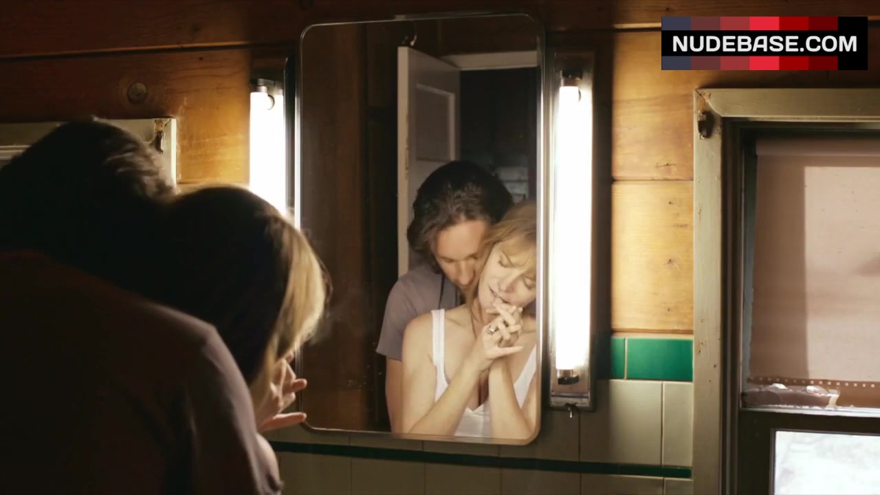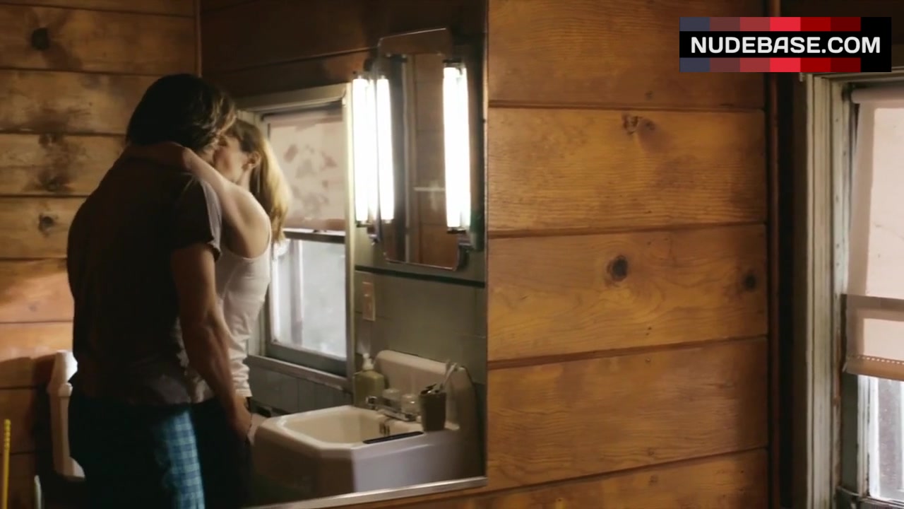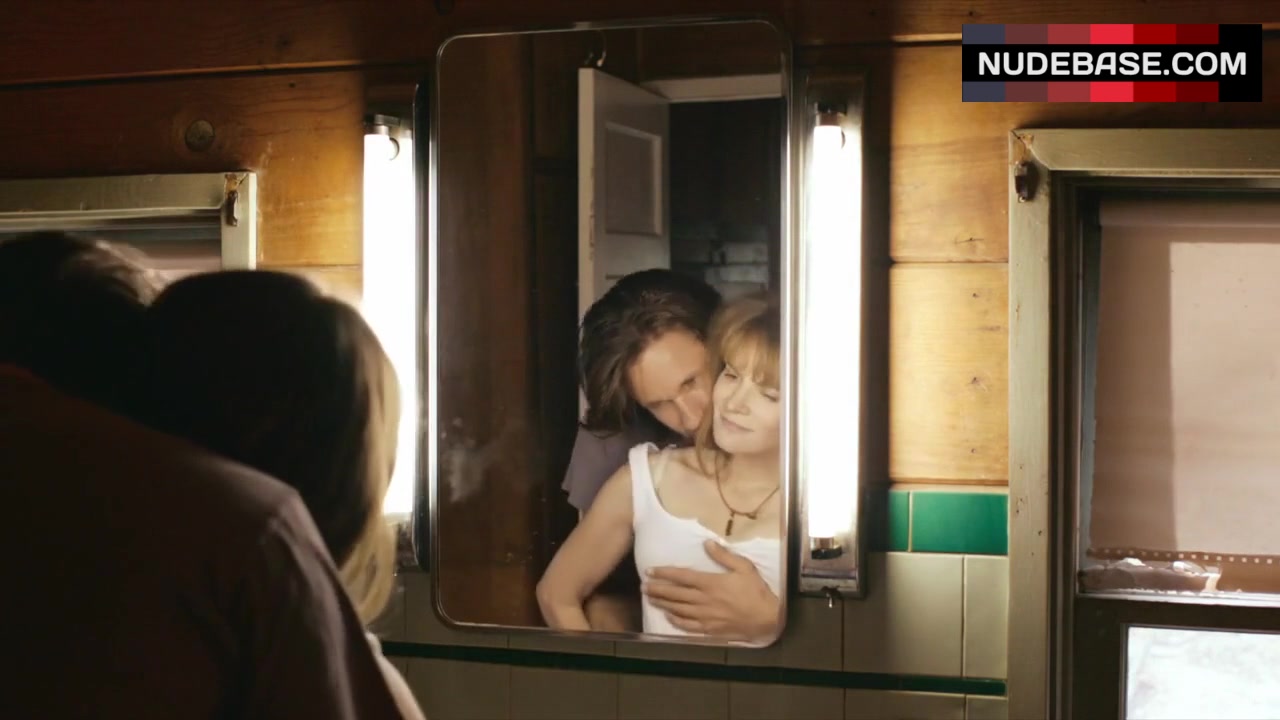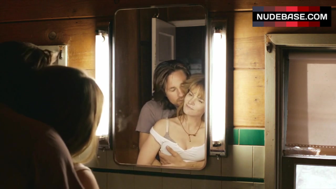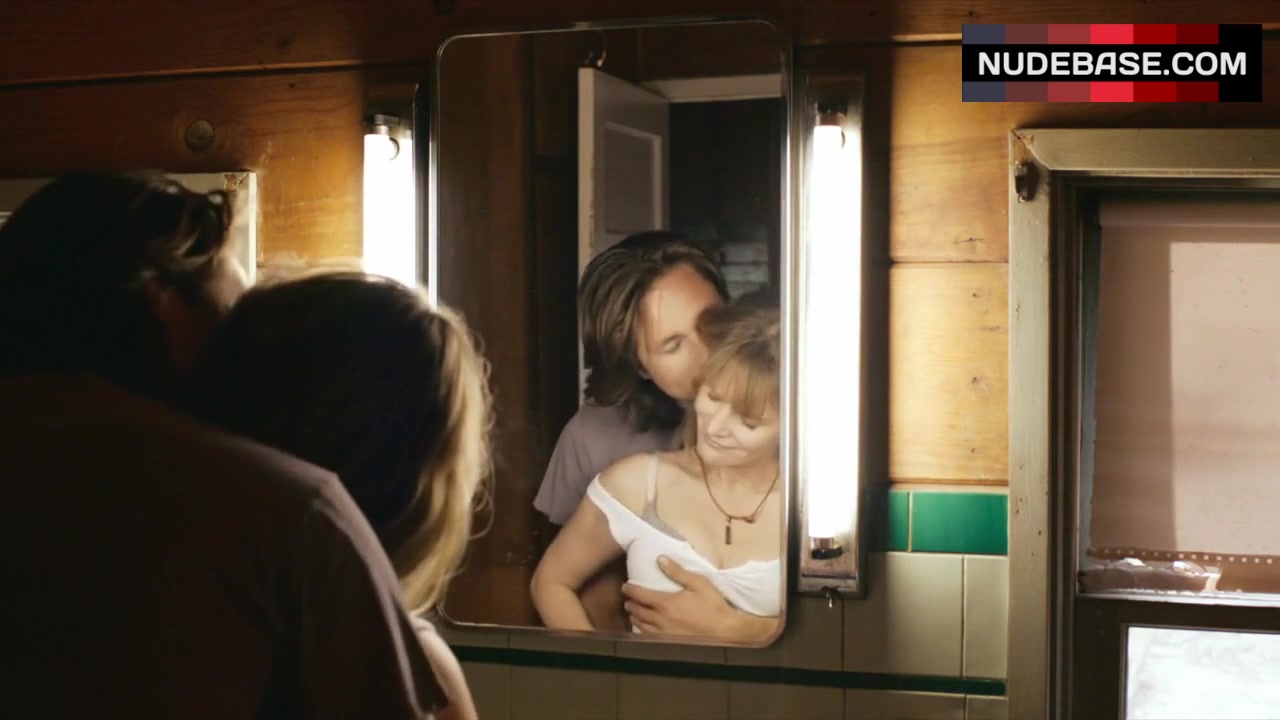 There is scene in the movie "The Moment" (2013), in which Jennifer Jason Leigh shows cleavage.