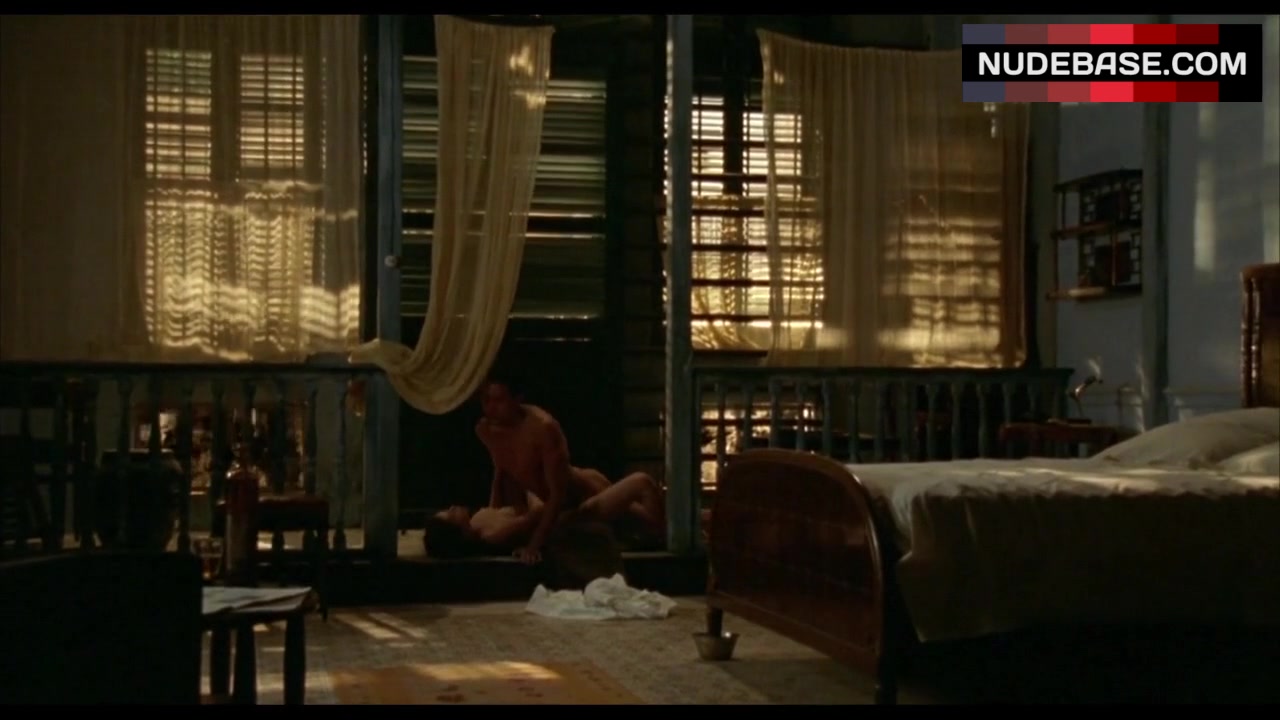 Jane March appears in sex scene in the movie "The Lover" . She shows naked tits and pussy here.