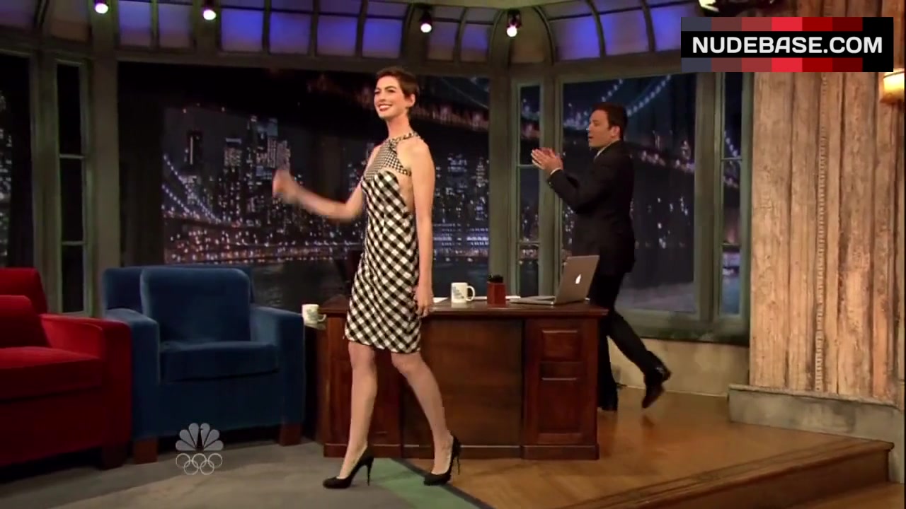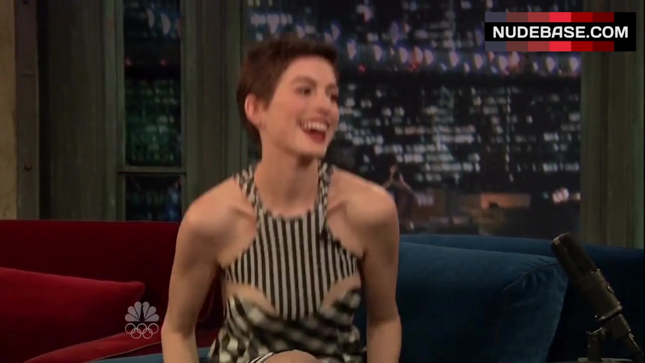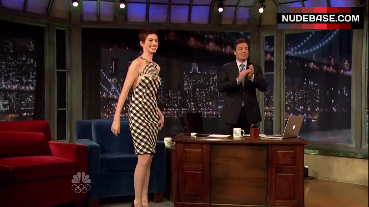 Anne Hathaway shows side boob in the series "Late Night with Jimmy Fallon".