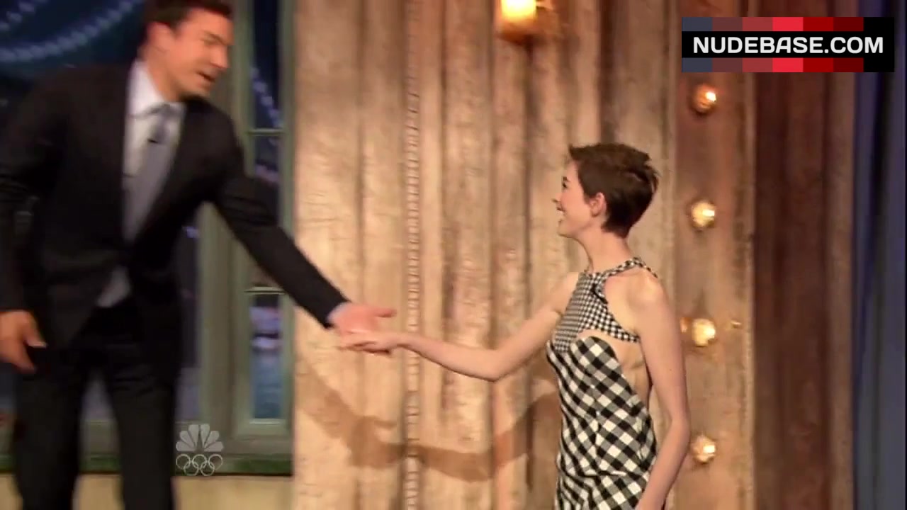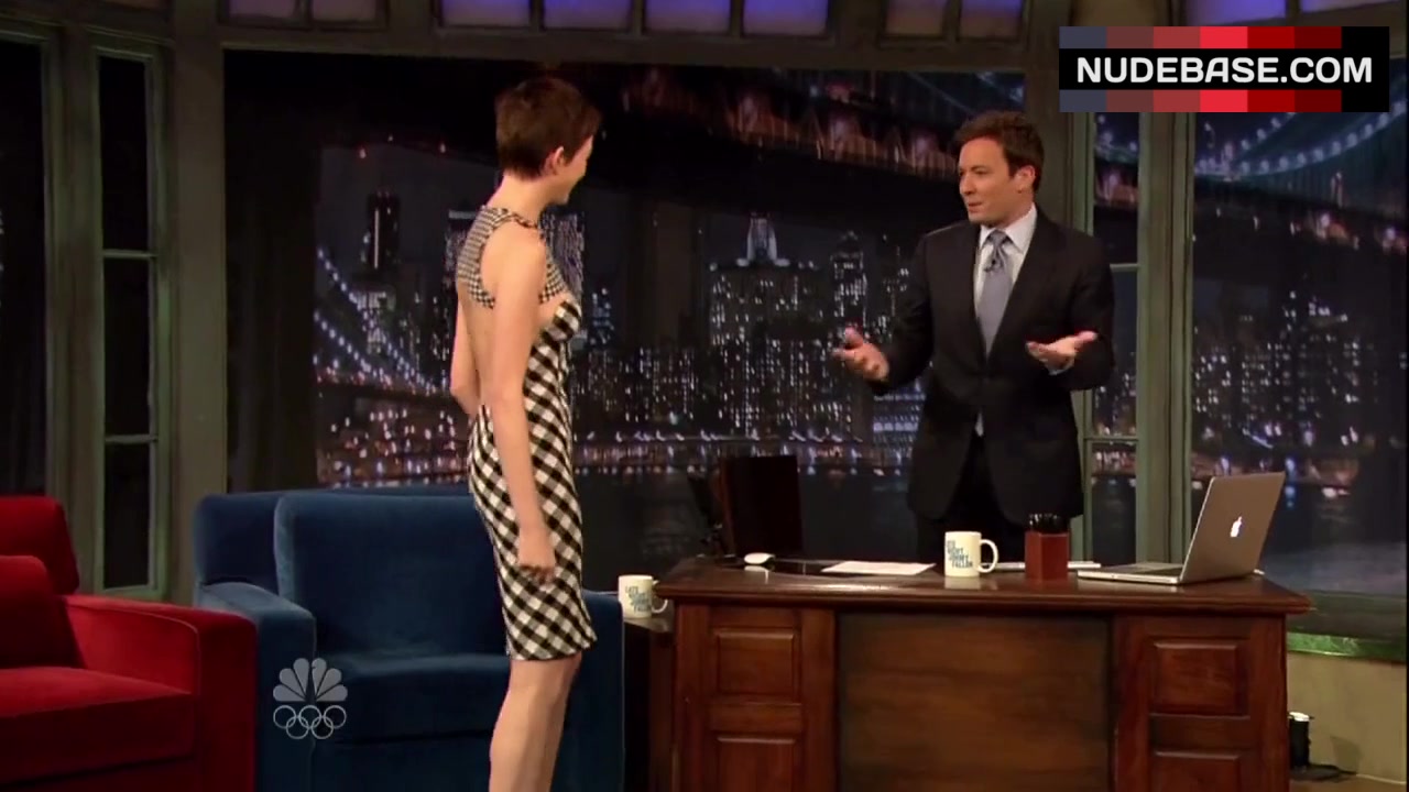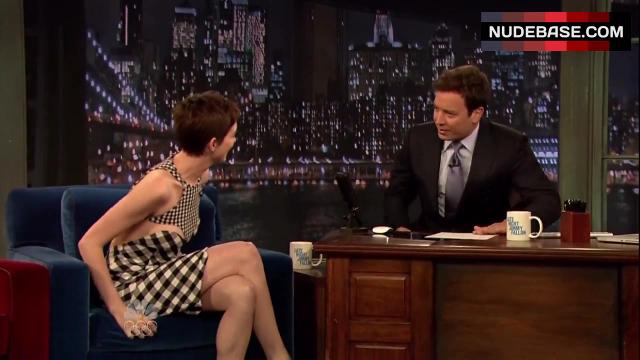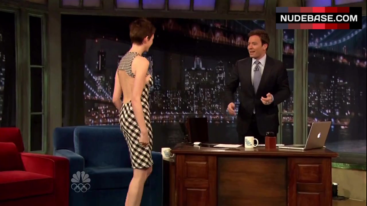 Anne Hathaway shows side boob in the series "Late Night with Jimmy Fallon".