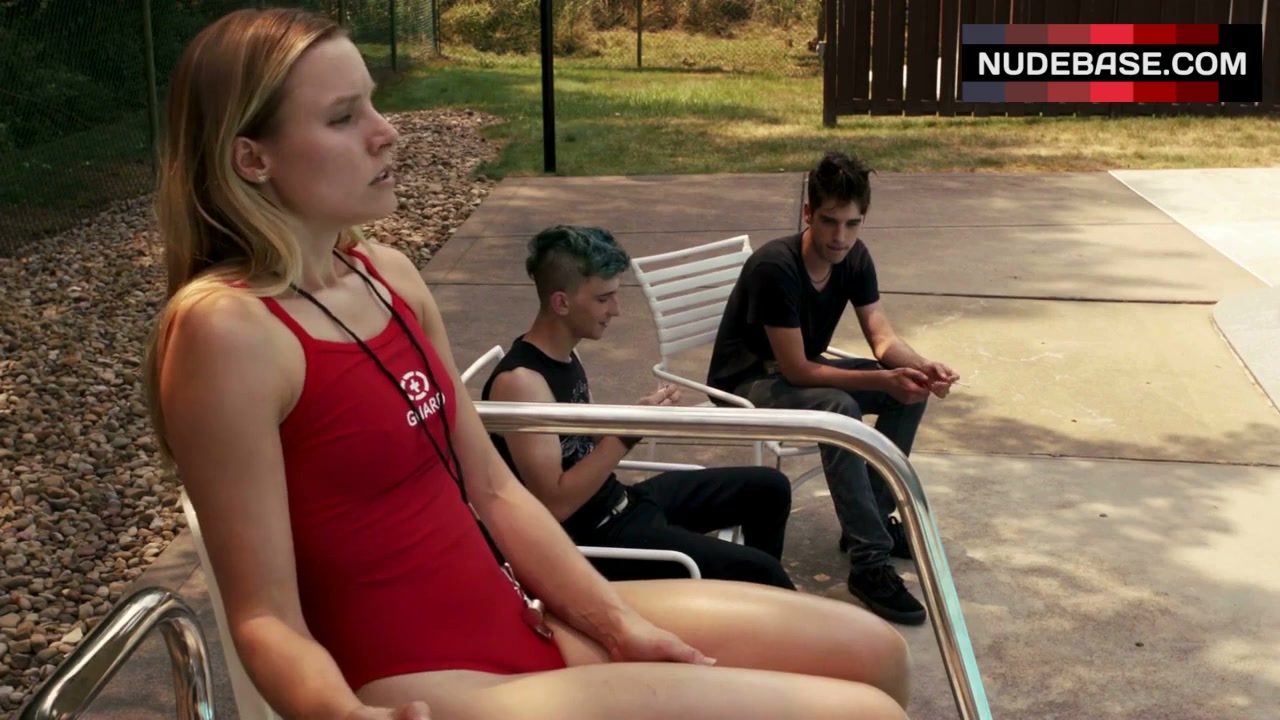 In this scene from the drama "The Lifeguard" (2013) you can see Kristen Bell in swimsuit.