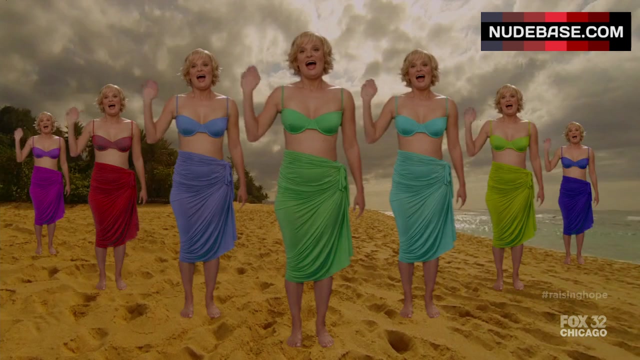 In this scene from the comedy "Raising Hope" (2012) Martha Plimpton is hot in bikini.