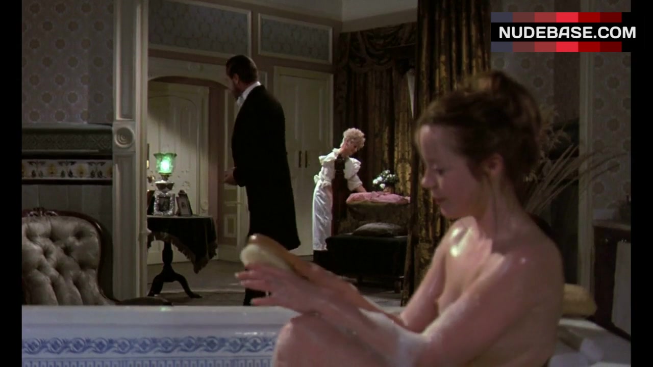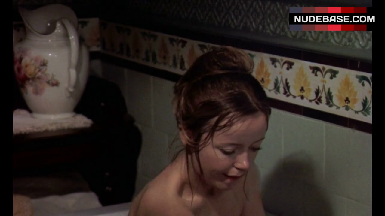 In the movie "Hands of the Ripper", Angharad Rees appears in boobs scene. She shows naked boobs here.