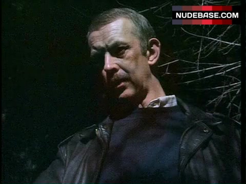 In this scene from the series "Devices and Desires" Suzan Crowley is lying nude. She shows naked boobs here.