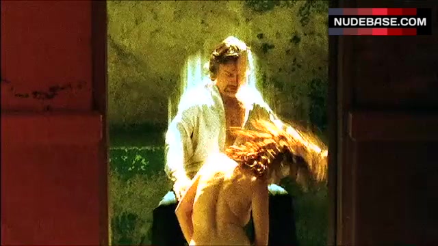 In this scene from the mystery drama "CSI: Crime Scene Investigation" (2000) Kata Dobo shows side boob.