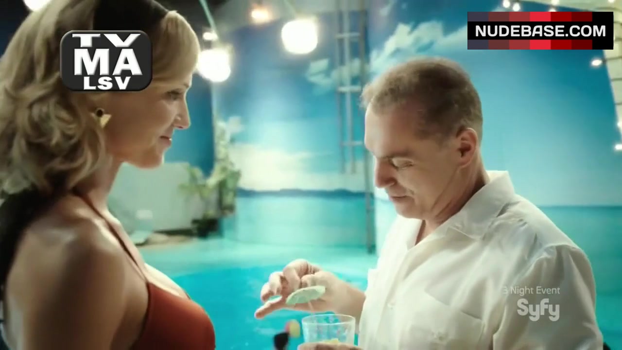 Take a look at this scene from the drama "Ascension" (2014) and admire Tricia Helfer in red bikini.