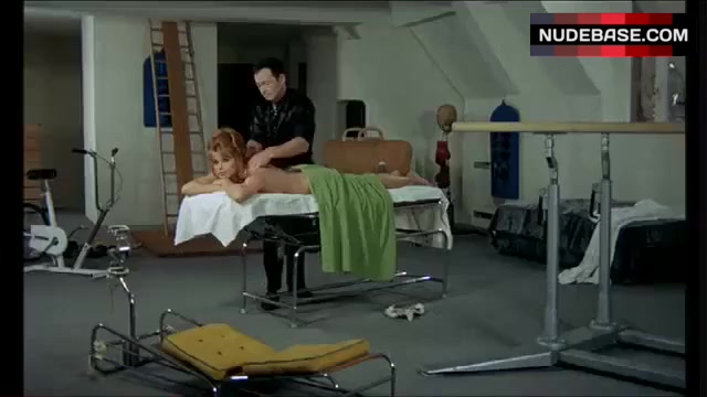 In this scene from the mystery drama "Diabolically Yours" (1967) you can see Senta Berger showing butt crack. She shows naked butt here.