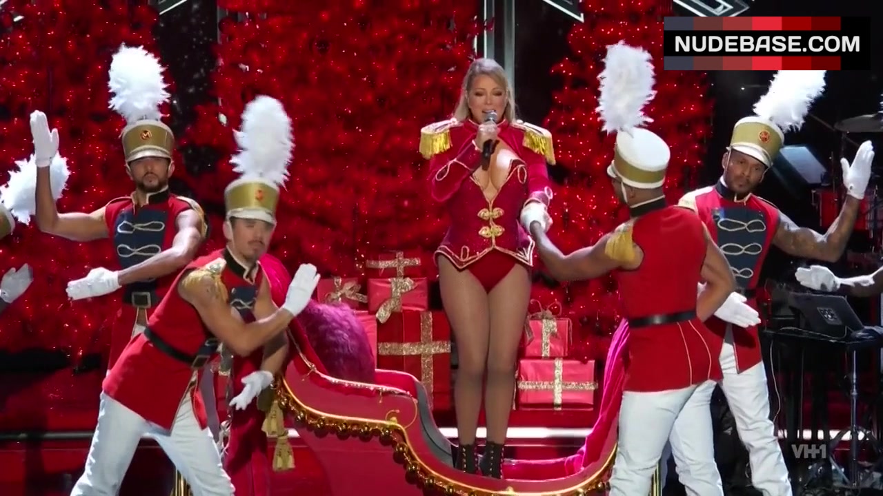 In this scene from "Divas Holiday: Unsilent Night", Mariah Carey shows cleavage.
