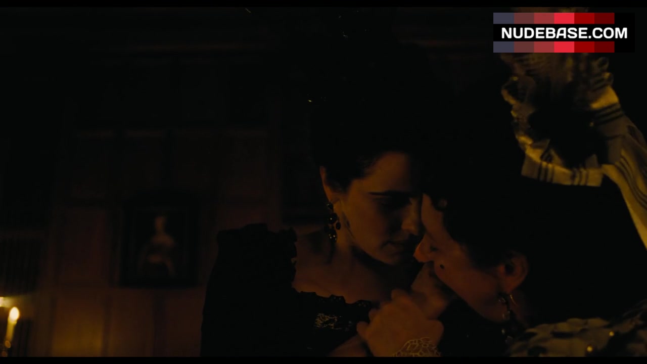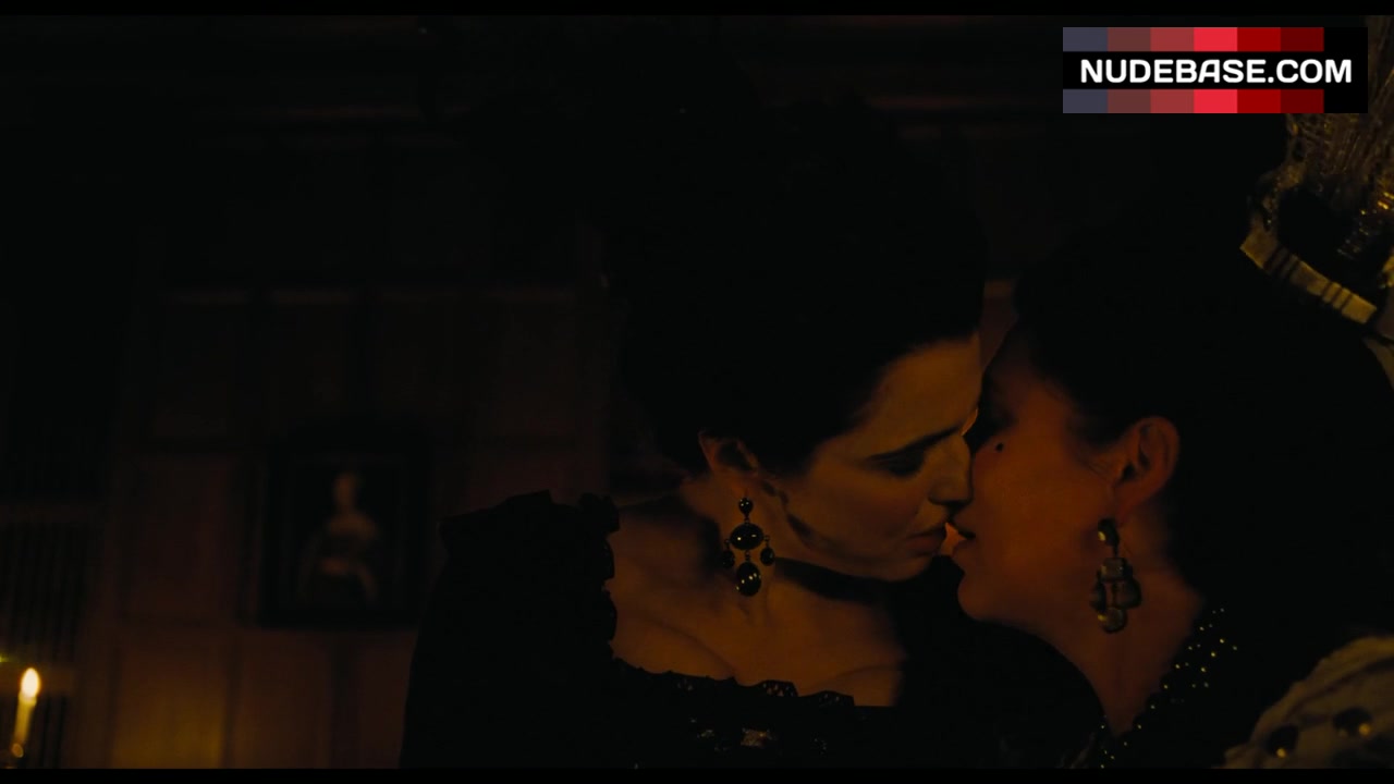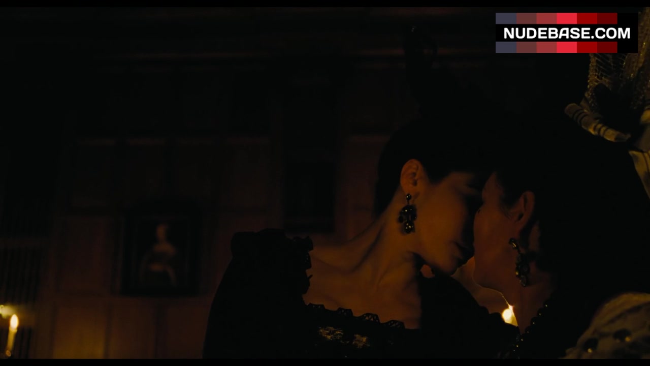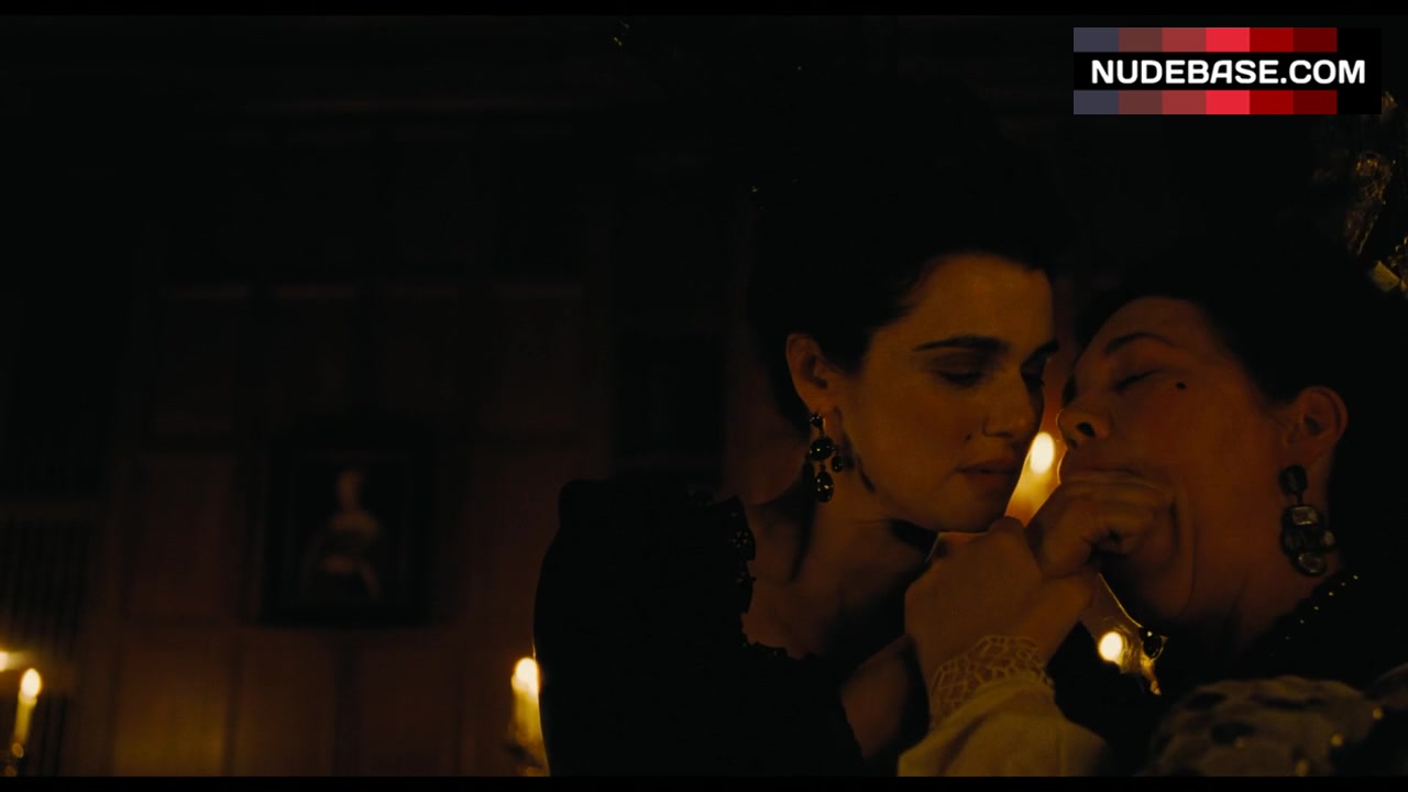 In this scene from "The Favourite" Rachel Weisz is having lesbian kiss.