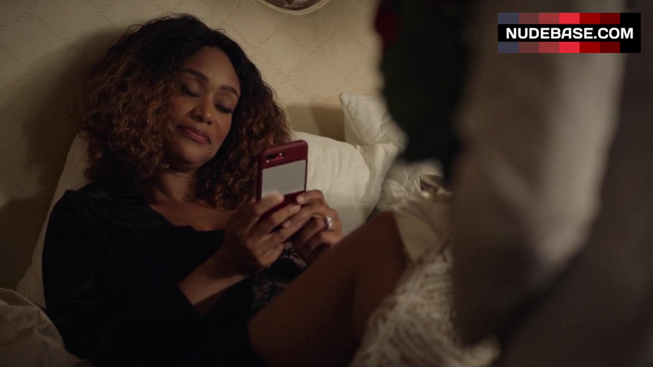 In this scene from "The Family Business" Tami Roman shows cleavage.