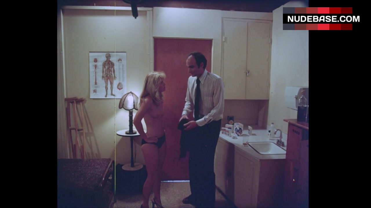 Linnea Quigley shows exposed breasts in the movie "Summer Camp".