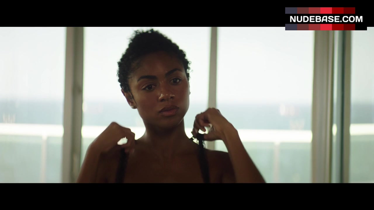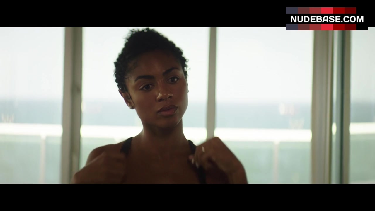 Hot scene with Chelsea Tavares in bra and panties from “Transformers” .