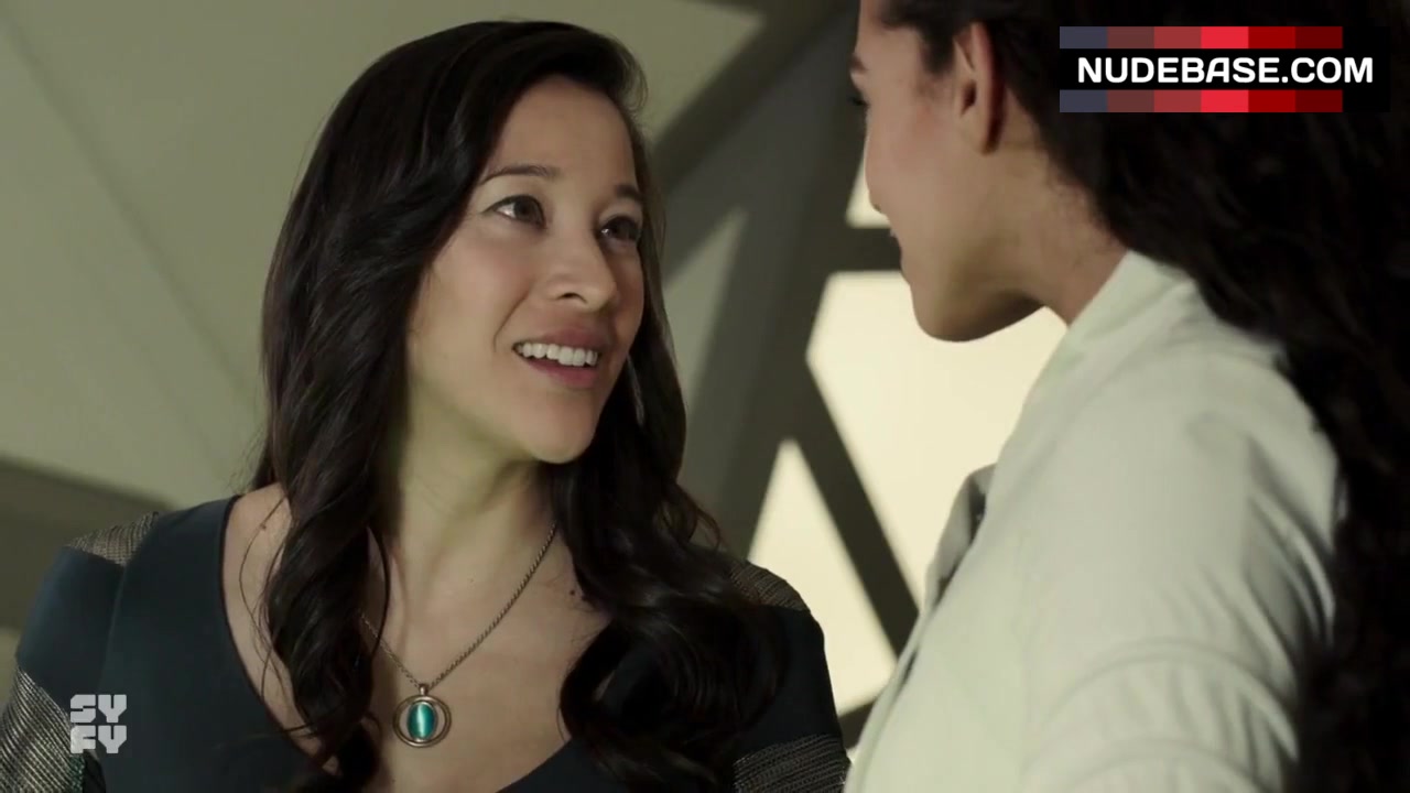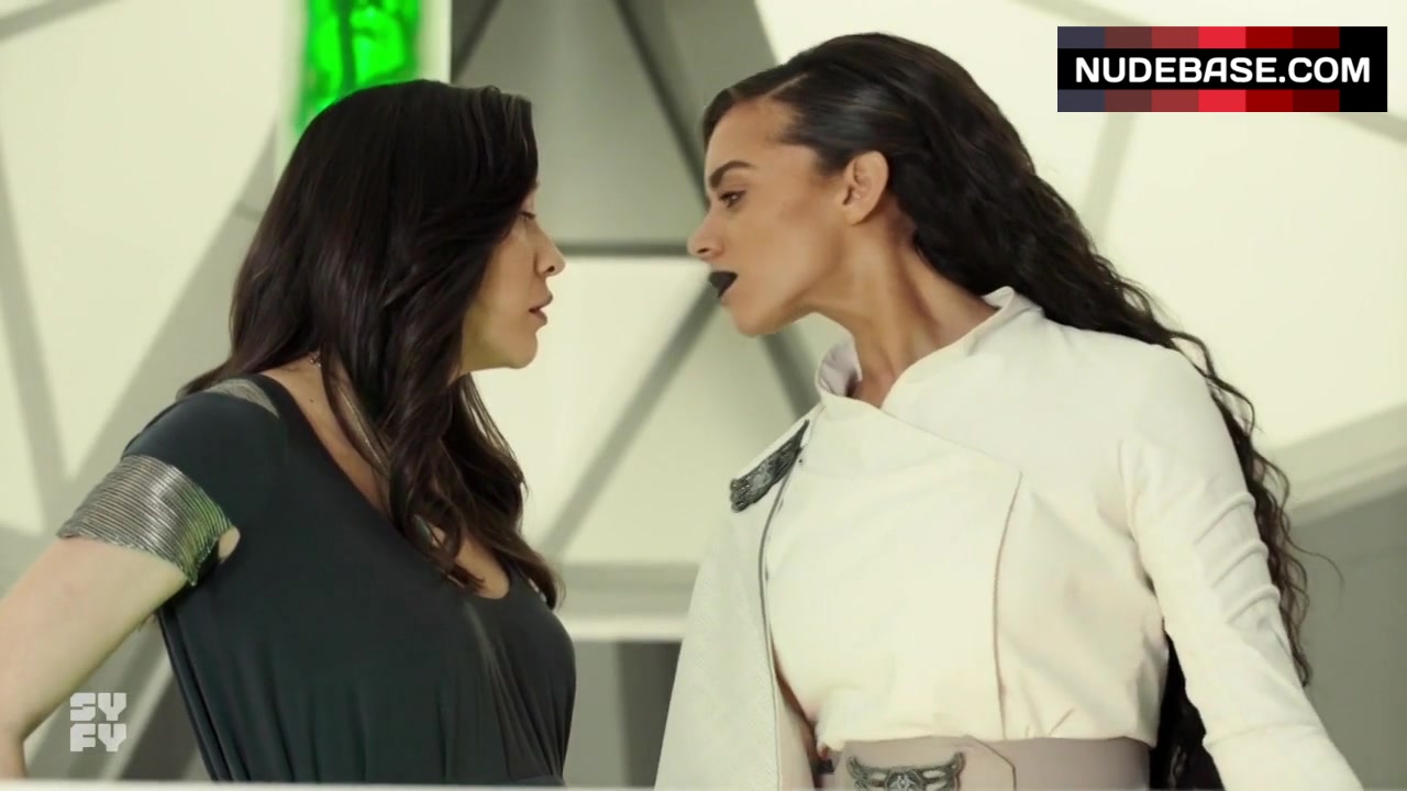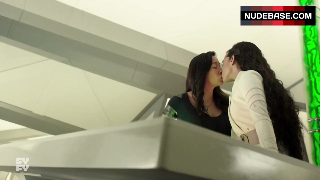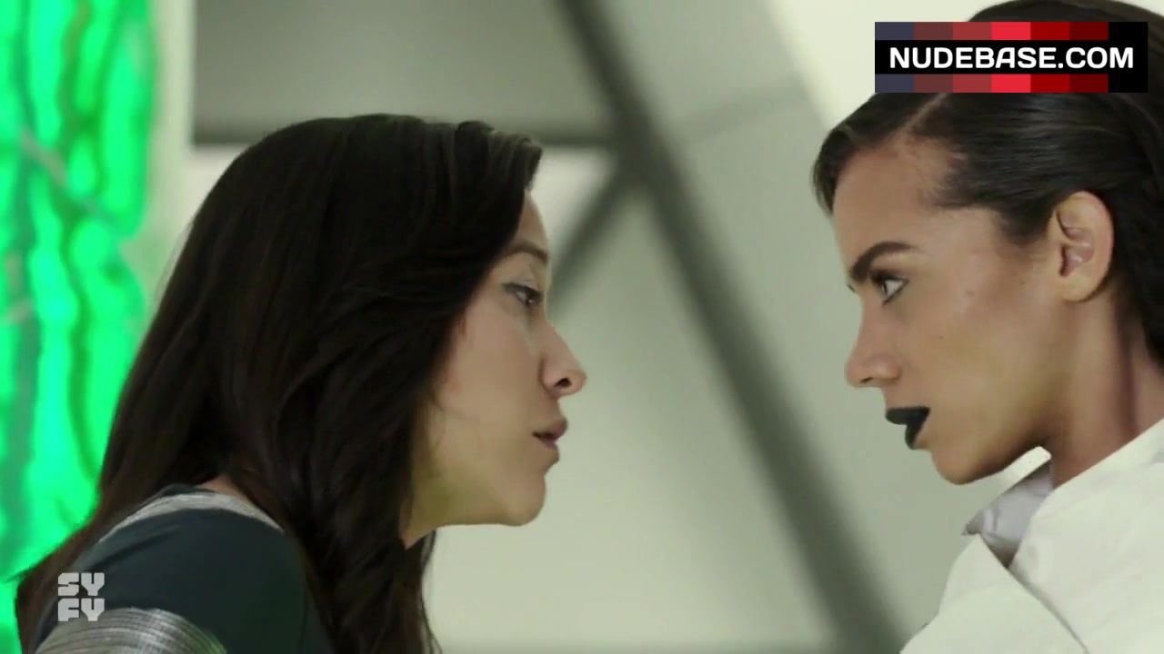 In this scene from the series "Killjoys" (2015) you can see Mayko Nguyen having lesbian kiss.