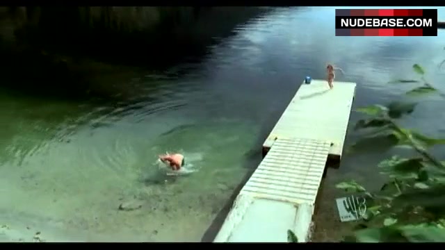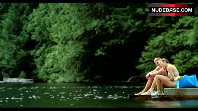 In this scene from the mystery drama "Smallville" (2001) you can see Erica Durance in blue bikini.