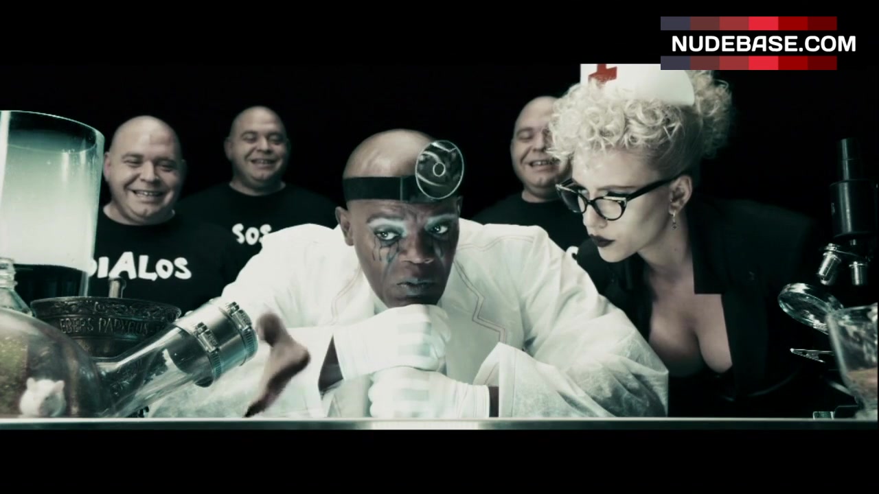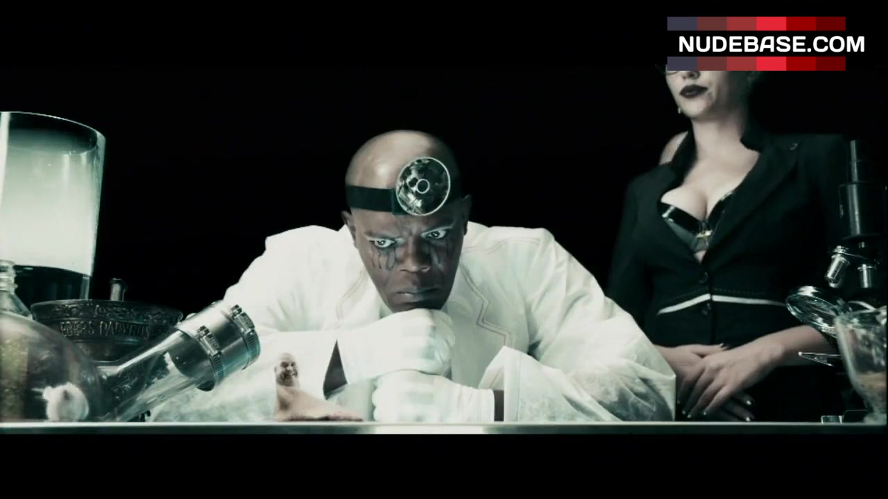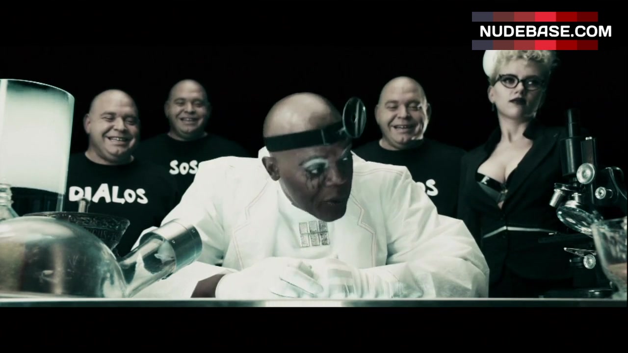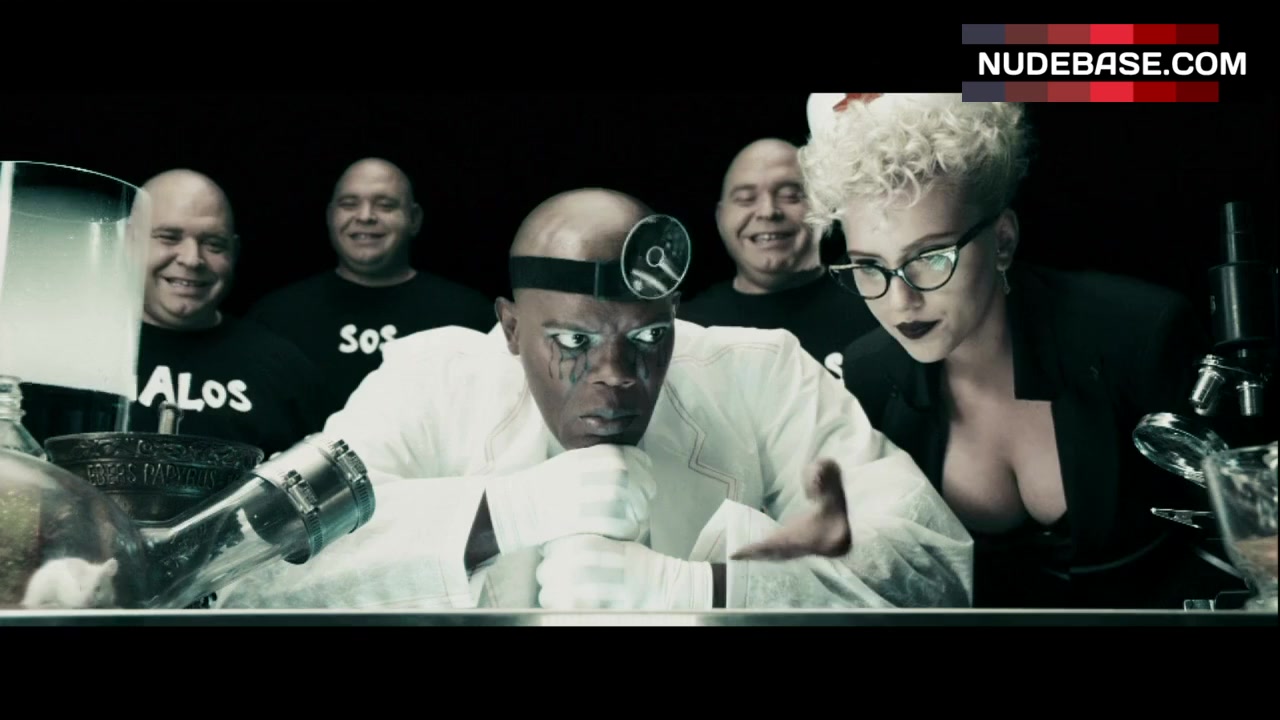 In this scene from the movie "The Spirit", Scarlett Johansson shows decollete.